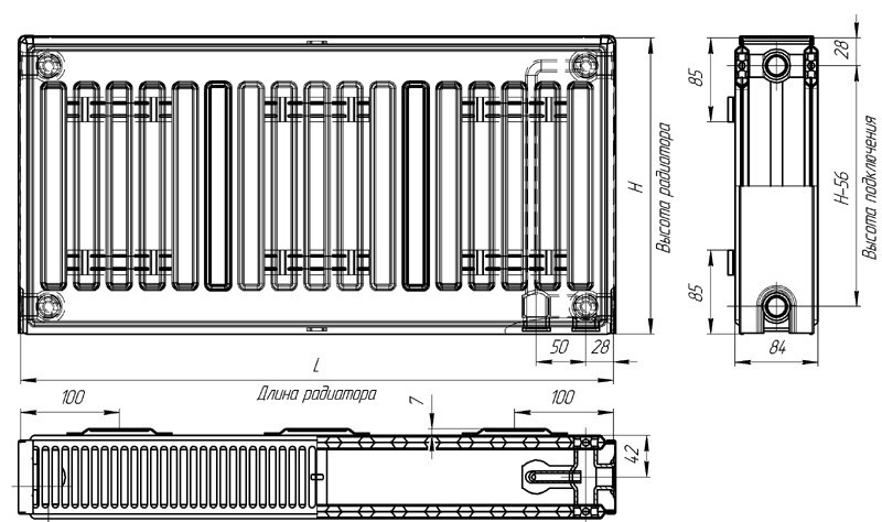 Радиатор Лидея ЛУ 20-530 стальной 3000x500x84 мм