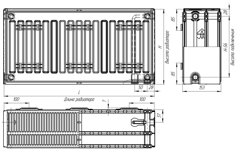 Стальной панельный радиатор Лидея ЛУ 30-317 представляет собой трехрядный без конвективного оребрения между панелями (3 – три панели, 0 – отсутствие конвекторов) отопительный прибор глубиной 153 мм. Лидея Универсал – отопительные приборы со встроенными терморегулирующим клапаном и дополнительными нижними присоединительными патрубками с правой или левой стороны для донной подводки теплоносителя (всего 6 патрубков – 4 боковых и 2 донных). Наличие дополнительных патрубков позволяет реализовать любой узел обвязки радиатора. Эстетический вид теперь не будет испорчен, ведь все трубы будут располагаться под полом или на полу. Цвет покрытия - белый (RAL 9016). Область применения: Стальные панельные радиаторы «Лидея» предназначены для применения в закрытых системах водяного отопления жилых, административных и общественных зданий. Однако с учетом свойств данного вида покрытия радиаторы не предназначены для помещений с агрессивной и/или влажной средой, при этом их можно применять в кухнях, ванных комнатах, туалетах а также в местах, находящихся вне зоны попадания водяных брызг. Преимущества радиаторов Лидея: Качество. Для производства радиаторов «Лидея» используются качественные материалы и самые современные технологии сварки и покраски. Экономичность. Радиаторы заполняются меньшим количеством теплоносителя, что требует меньшего расхода энергии для их нагрева. Хорошая теплоотдача. Стальные панельные радиаторы «Лидея» обладают низкой тепловой инерцией и хорошей теплоотдачей. Практичность. Радиаторы имеют съемную верхнюю решетку и боковины, что упрощает санитарный уход. Универсальность. Просто и легко встраиваются в систему, работающую на любом топливе. Эстетичность. Дизайн стальных панельных радиаторов «Лидея» позволяет прекрасно вписаться в интерьер любого помещения, делая его более комфортным и уютным. Требования к качеству теплоносителя: свободная угольная кислота: 0; водородный показатель pH: 8,3-9; содержание кислорода: не более 0,02 мг/кг; общая жесткость: не более 0,5 мг/л; соединения железа: не более 0,5 мг/л. Стальные панельные радиаторы «Лидея» изготавливаются из двух штампованных зеркально симметричных листов из высококачественной холоднокатаной стали толщиной 1,2 мм в соответствии с EN 10 131. По периметру листы свариваются роликовым швом, а между вертикальными водоканалами – точечной сваркой. Шаг вертикальных водоканалов составляет 33,3 мм. Конвектора из стального листа толщиной 0,4 мм в соответствии с EN 10 131 привариваются к панелям с тыльной стороны непосредственно к наружным стенкам вертикальных водоканалов точечной сваркой. Радиаторы производятся на самой современной поточной сварочной линии от ведущего европейского производителя. Каждый радиатор «Лидея», сошедший со сварочной линии, проверяется на прочность и герметичность давлением воздуха 1,5 МПа, после чего попадает на автоматическую линию покраски. В комплекте с радиаторами поставляется набор крепления, который упаковывается вместе с радиаторами.