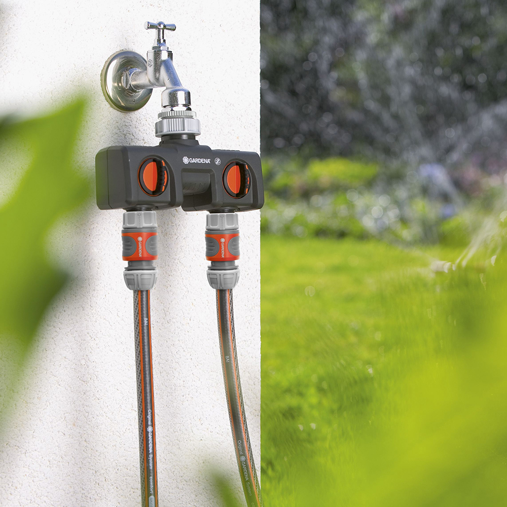 Распределитель 2-х канальный GARDENA (Гардена) допускает разовое подключение двух инструментов для полива к одному крану. Плавная регулировка потока на выходе и возможность перекрытия воды отдельно в каждой линии. Предусмотрено подключение двух клапанов системы полива. Все части легко соединяются и обеспечивают герметичность системы. Распределитель совместим с кранами с резьбой 33,3 мм (G 1'). С помощью штуцера 'Профи' (арт. 2801-20) распределитель можно преобразовать в систему 'Профи' GARDENA.