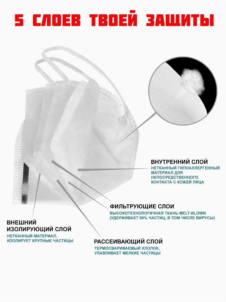 Респиратор KN95 FFP2 5 слоёв защиты, многоразовый, защитный, заводская коробка 10 шт