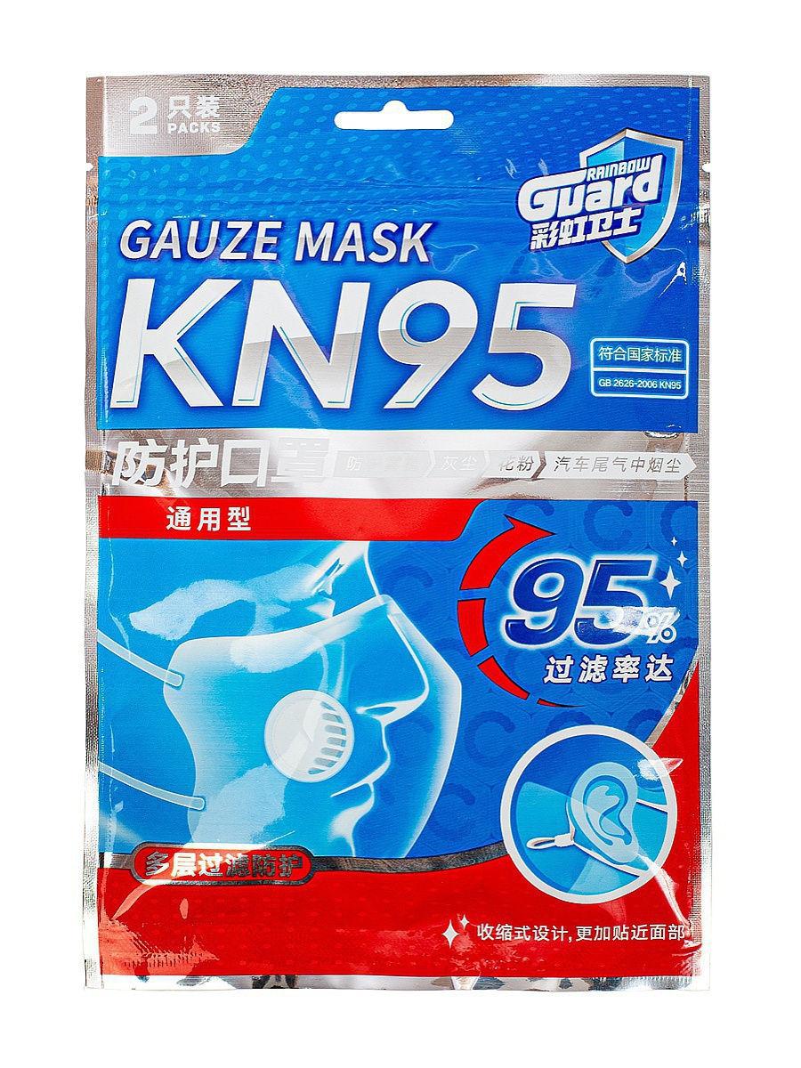 Респиратор Rainbow Guard защитный, не медицинский, KN95, с клапаном, аналог 3M, FFP2, размер регулируется, 2 шт