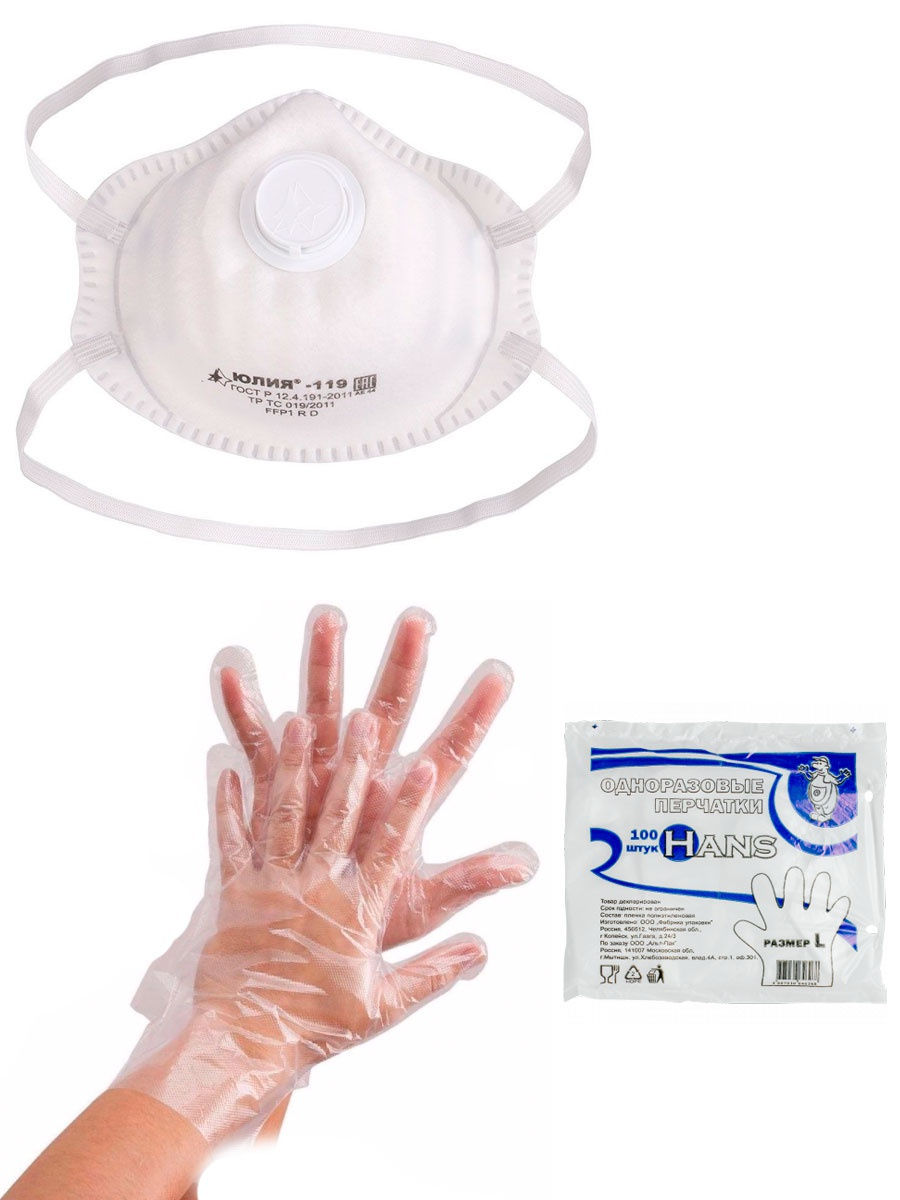 Респиратор ЮЛИЯ 119 многоразовый + Перчатки одноразовые 100 шт