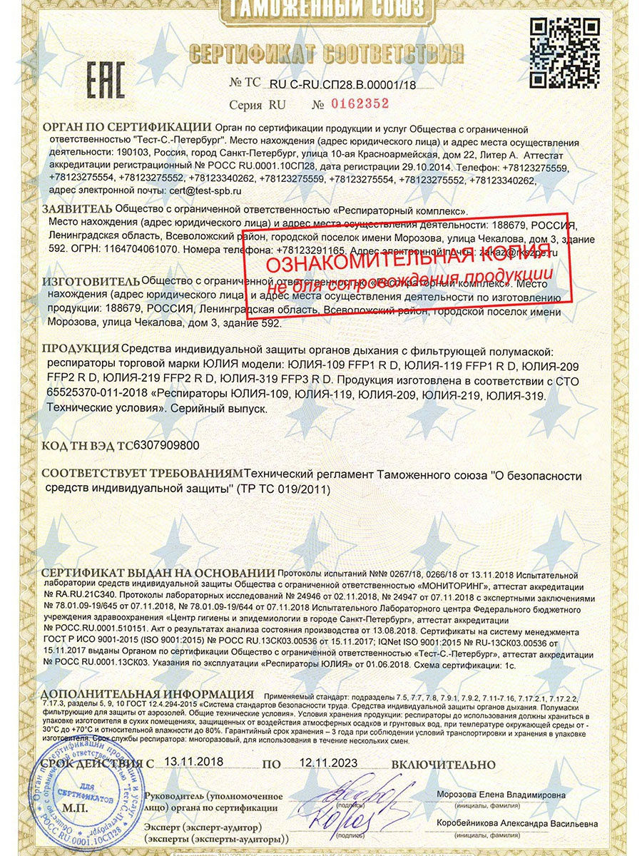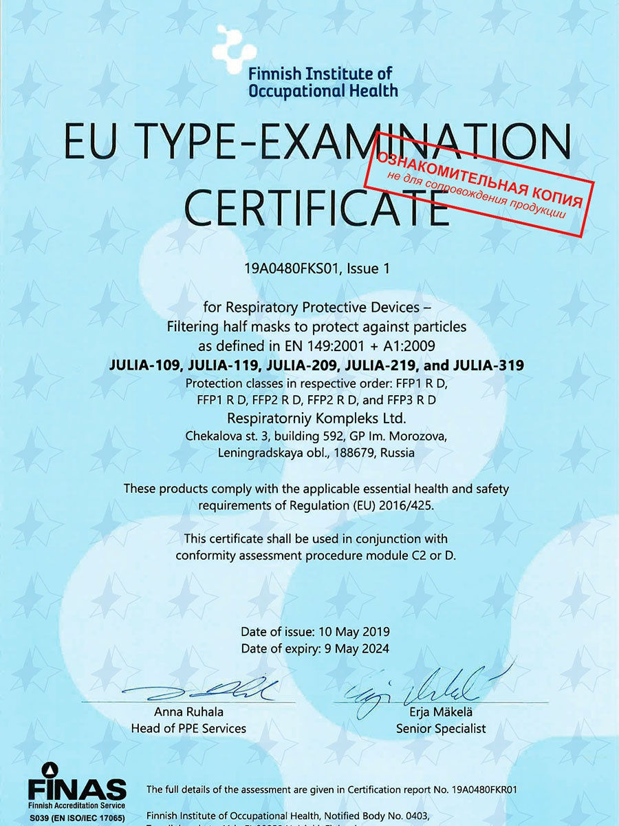 Формованный респиратор многоразового применения ЮЛИЯ-119. Класс защиты FFP1 R D. Из нетканого фильтрующего материала, имеет эластичные ленты оголовья и клапан выдоха, который обеспечивает понижение влажности и температуры в подмасочном пространстве и создает комфортные условия для дыхания. Облегченный корпус, гипоаллергенный материал, широкий угол обзора. Тестировался на доломитовую пыль. В наборе одноразовые полиэтиленовые перчатки, 100 штук / 50 пар, размер L.