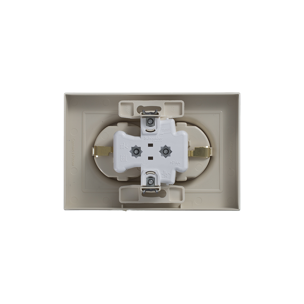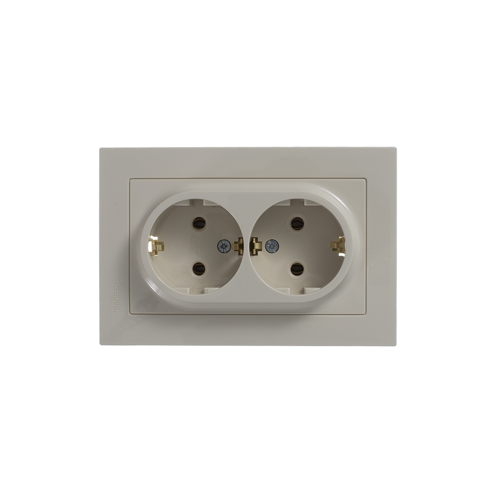 Розетка двойная Schneider Electric Атлас Дизайн с заземлением с рамкой бежевая