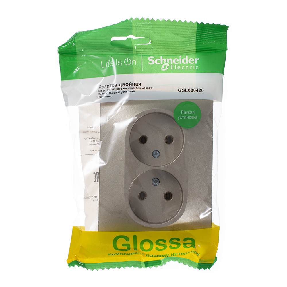 Розетка двойная Schneider Electric Глосса без заземления титан