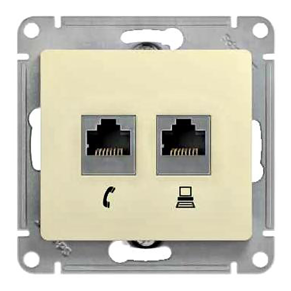 Розетка компьютерная + телефонная Schneider Electric Глосса без рамки бежевая