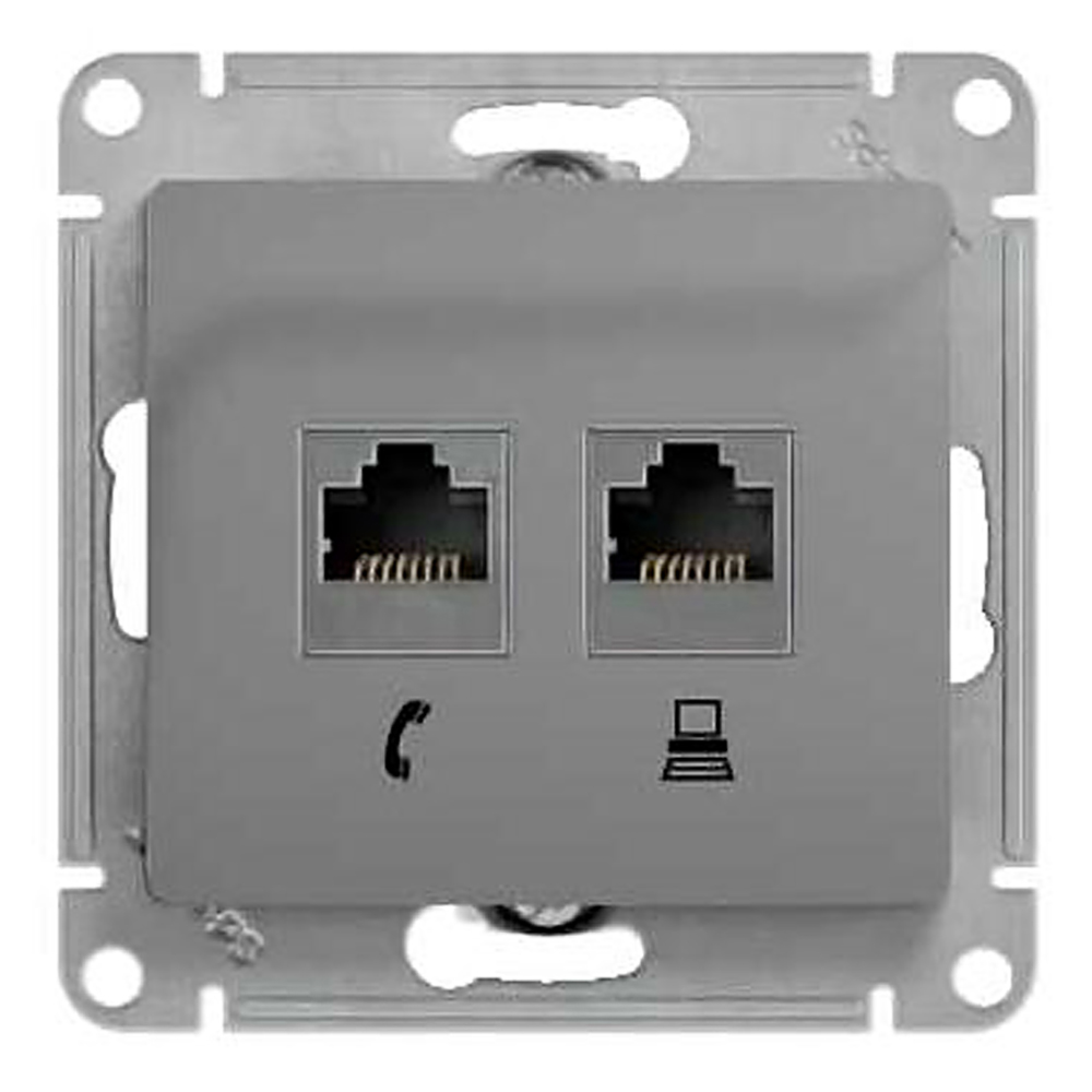Розетка компьютерная + телефонная Schneider Electric Глосса без рамки алюминий