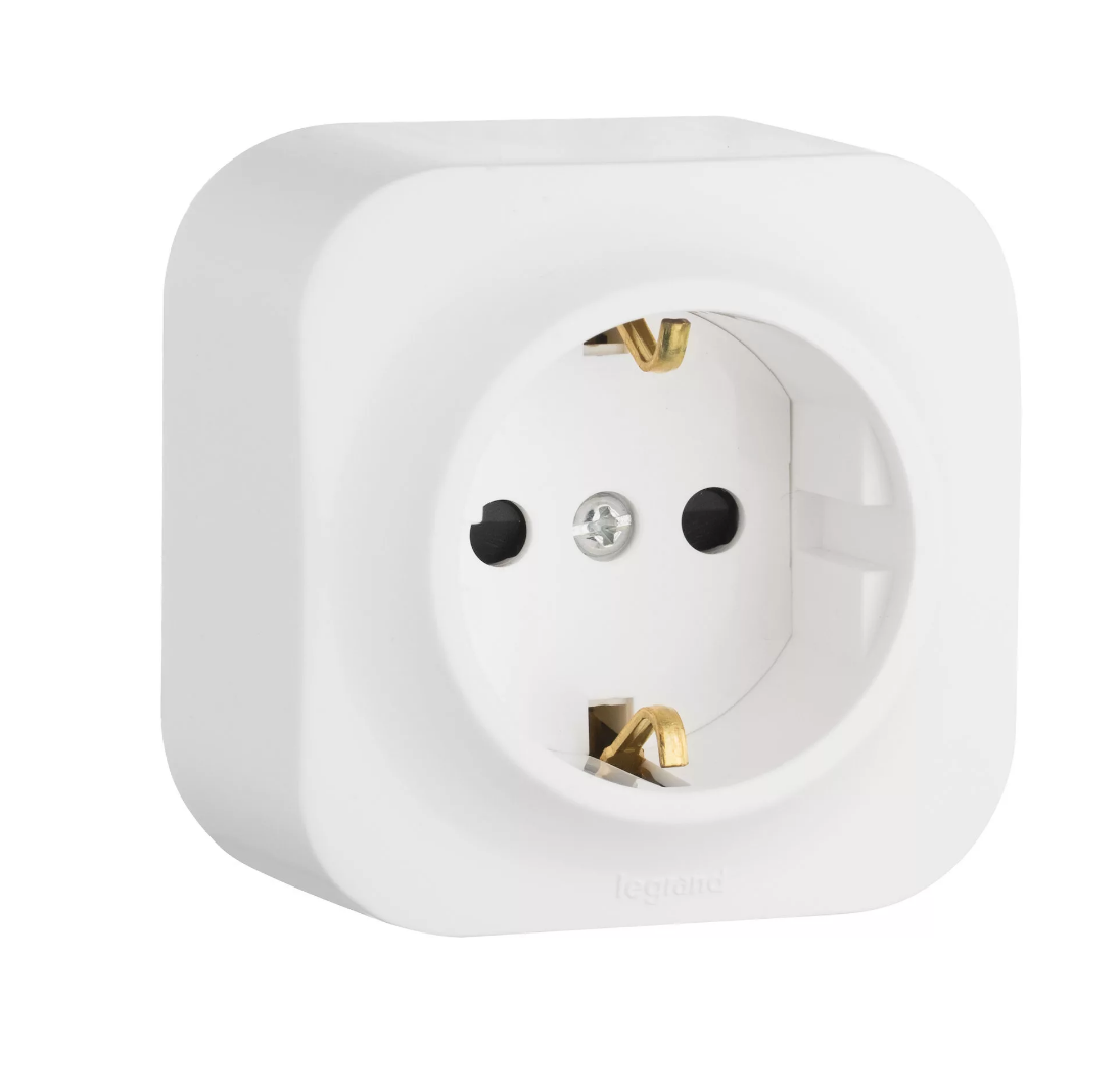 Накладная розетка Legrand серия Quteo, артикул 782211, белый корпус. Изготовлено в Венгрии. Продумано до мелочей, удобно монтировать и подключать.