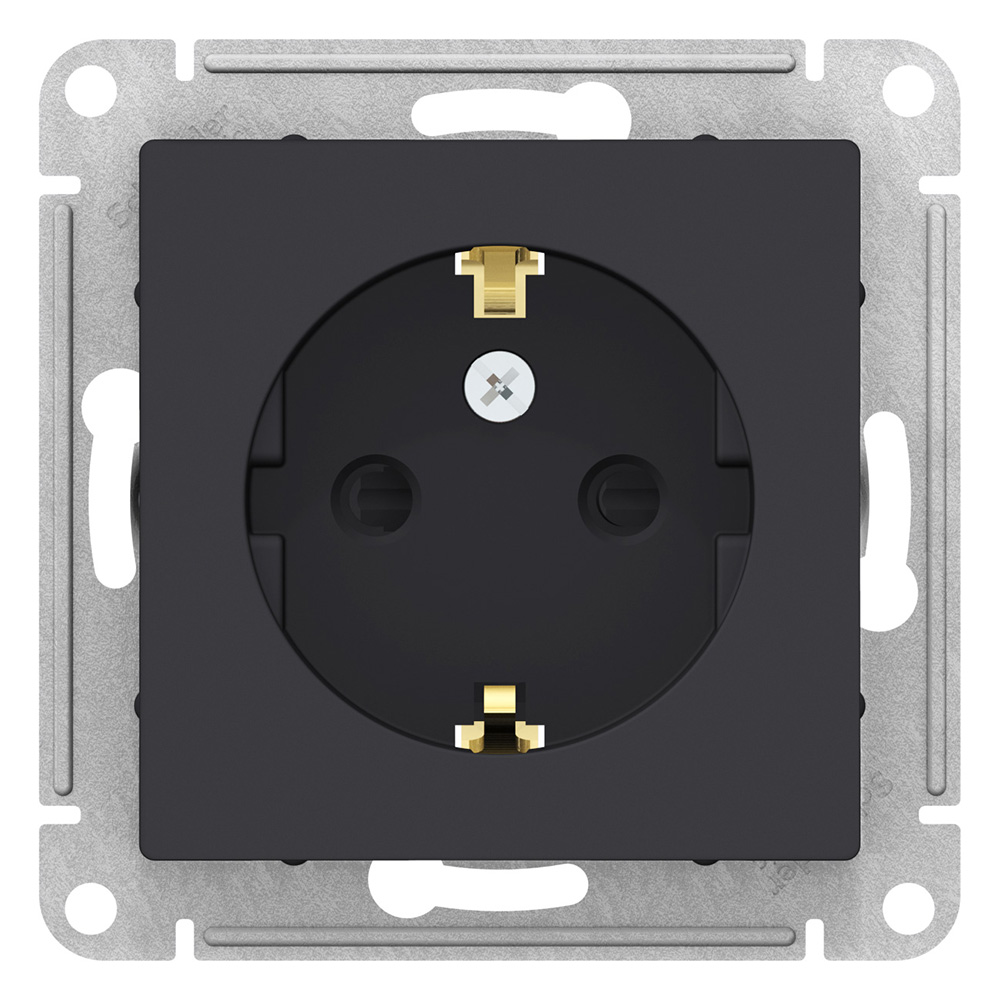 Розетка Schneider Electric Атлас Дизайн с заземлением со шторками без рамки карбон