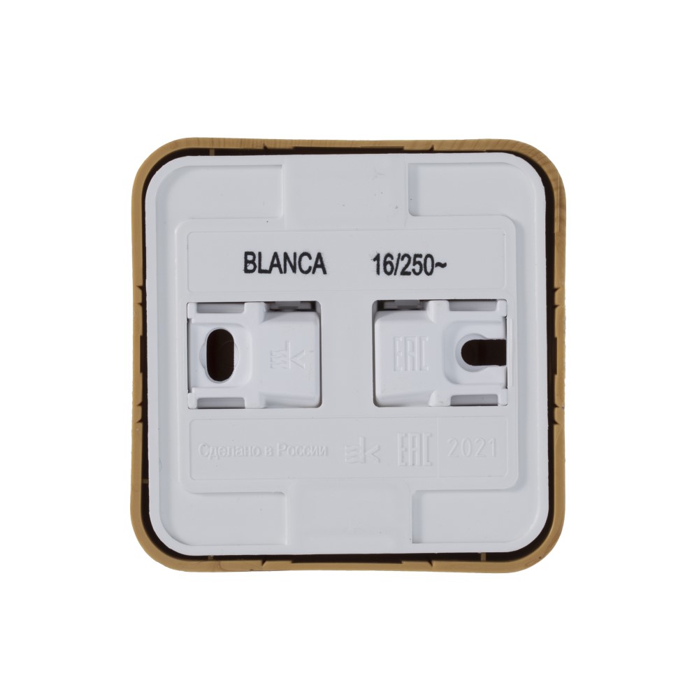 Розетка накладная серии Blanca (Бланка) BLNRA000115 с изолирующей пластиной, обладает современным и стильным дизайном. Подходит для жилых помещений, коммерческой недвижимости и объектов инфраструктуры. Преимущества: - контактные группы розетки обеспечивают надежную фиксацию и контакт вилки; - термостойкий материал основания обеспечивает дополнительную жесткость и долговечность конструкции; - две регулируемые точки крепления в изделиях открытой установки гарантируют строго горизонтальный монтаж механизмов на стенах; - четкая маркировка клемм для безошибочного подключения; - шаблон для зачистки проводов на корпусе розетки; - удобный подвод проводов; - цвет ясеня создан с помощью современной технологии, благодаря которой древесный рисунок смотрится абсолютно естественно. Номинальный ток: 16 А.