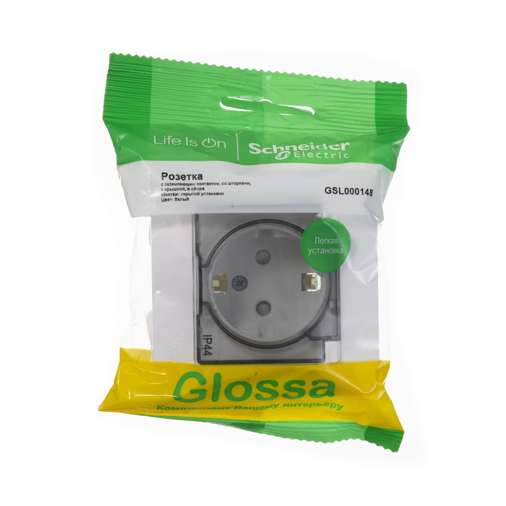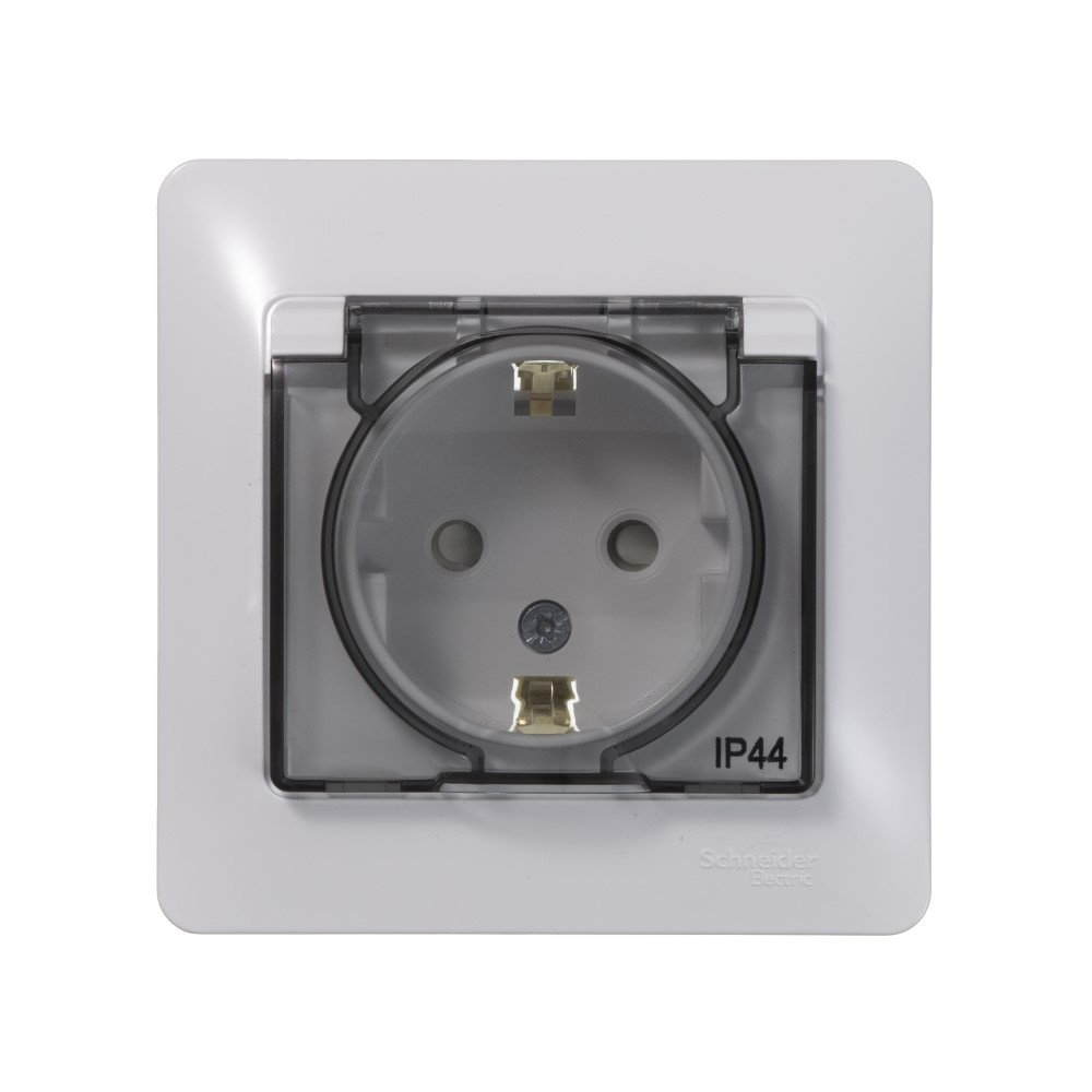Розетка Schneider Electric Глосса с крышкой с заземлением белая