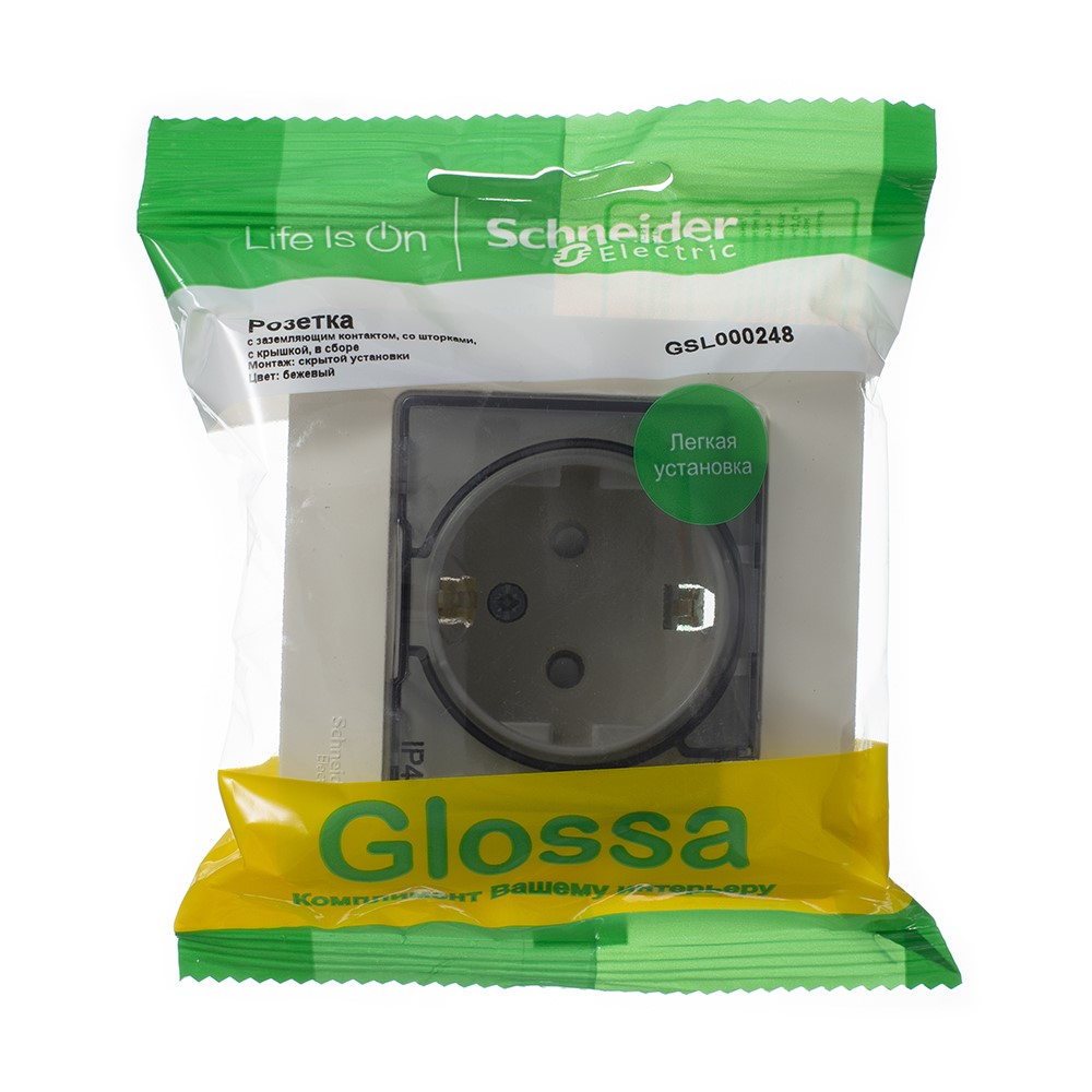 Встраиваемая розетка Glossa Schneider Electric (Глосса Шнайдер Электрик) GSL000248 с заземляющим контактом, предназначена для внутренней проводки, механизм устанавливается в специальное гнездо в стене. Рамка не отсоединяется. Возможен только одно-постовый монтаж. Подходит для монтажа в помещениях с повышенной влажностью. Удобный, быстрый и надежный монтаж: - эргономичные клеммы розеток расположены в один ряд - монтажные лапки плотно прижаты к корпусу и облегчают монтаж - телескопическая система выравнивания на неровных стенах - пластиковый механизм выполнен из термостойких электротехнических композитных материалов 20 000 циклов для розеток Токоведущие части механизмов закрыты пластиком, поэтому исключается поражение электрическим током. Наличие на основании выключателей схемы монтажа, характеристик изделия позволяют исключить ошибки установки. Номинальный ток: 16А Номинальное напряжение: 220В