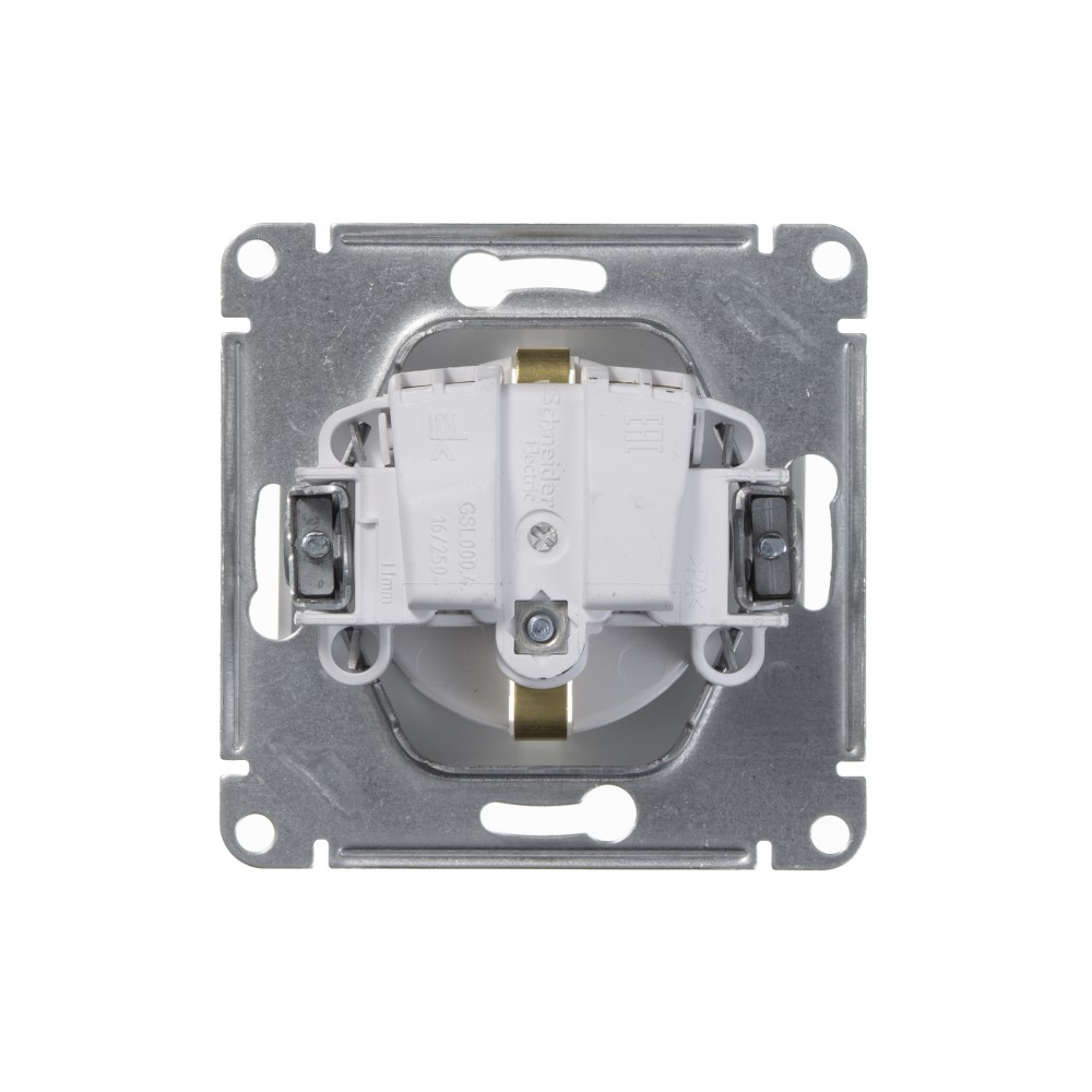 Встраиваемая розетка Glossa Schneider Electric (Глосса Шнайдер Электрик) GSL000143 с заземляющим контактом, предназначена для внутренней проводки, механизм устанавливается в специальное гнездо в стене. Данный вид розетки, без рамки, позволяет установить ее совместно с другими розетками или выключателями данной модели под одну совместную рамку, которая приобретается отдельно. Удобный, быстрый и надежный монтаж: - эргономичные клеммы розеток расположены в один ряд - монтажные лапки плотно прижаты к корпусу и облегчают монтаж - простота установки многопостовых комбинаций - телескопическая система выравнивания на неровных стенах - пластиковый механизм выполнен из термостойких электротехнических композитных материалов 20 000 циклов для розеток Токоведущие части механизмов закрыты пластиком, поэтому исключается поражение электрическим током. Наличие на основании выключателей схемы монтажа, характеристик изделия позволяют исключить ошибки установки. Номинальный ток: 16А Номинальное напряжение: 220В