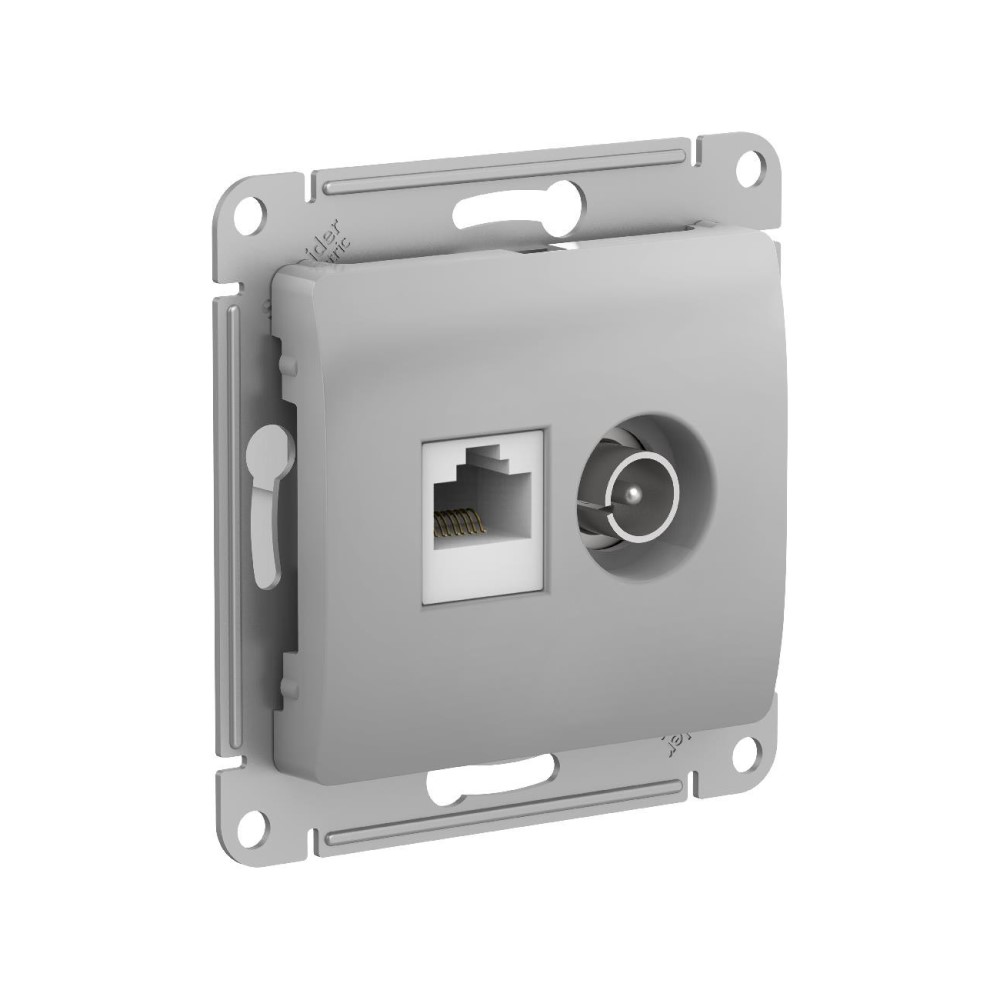 Розетка ТВ + RJ45 Schneider Electric Глосса без рамки алюминий
