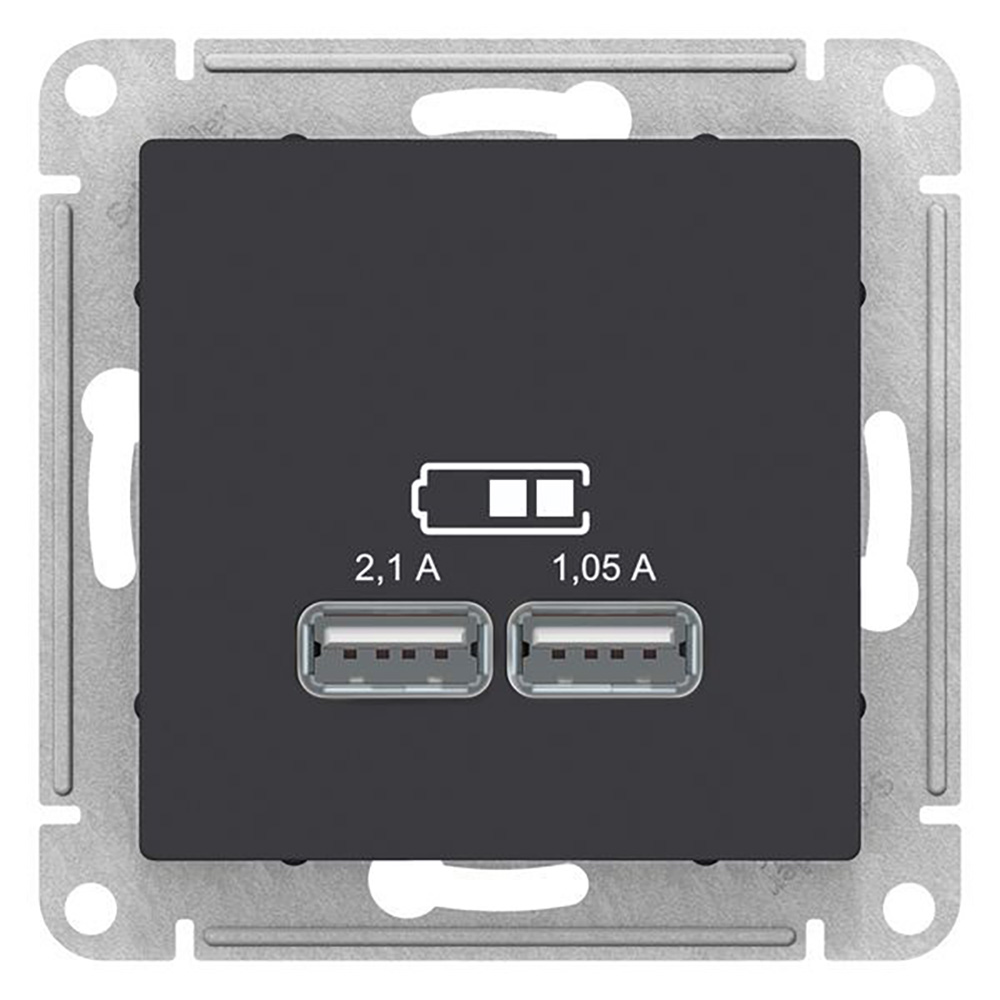 Розетка USB двойная Schneider Атлас Дизайн карбон без рамки