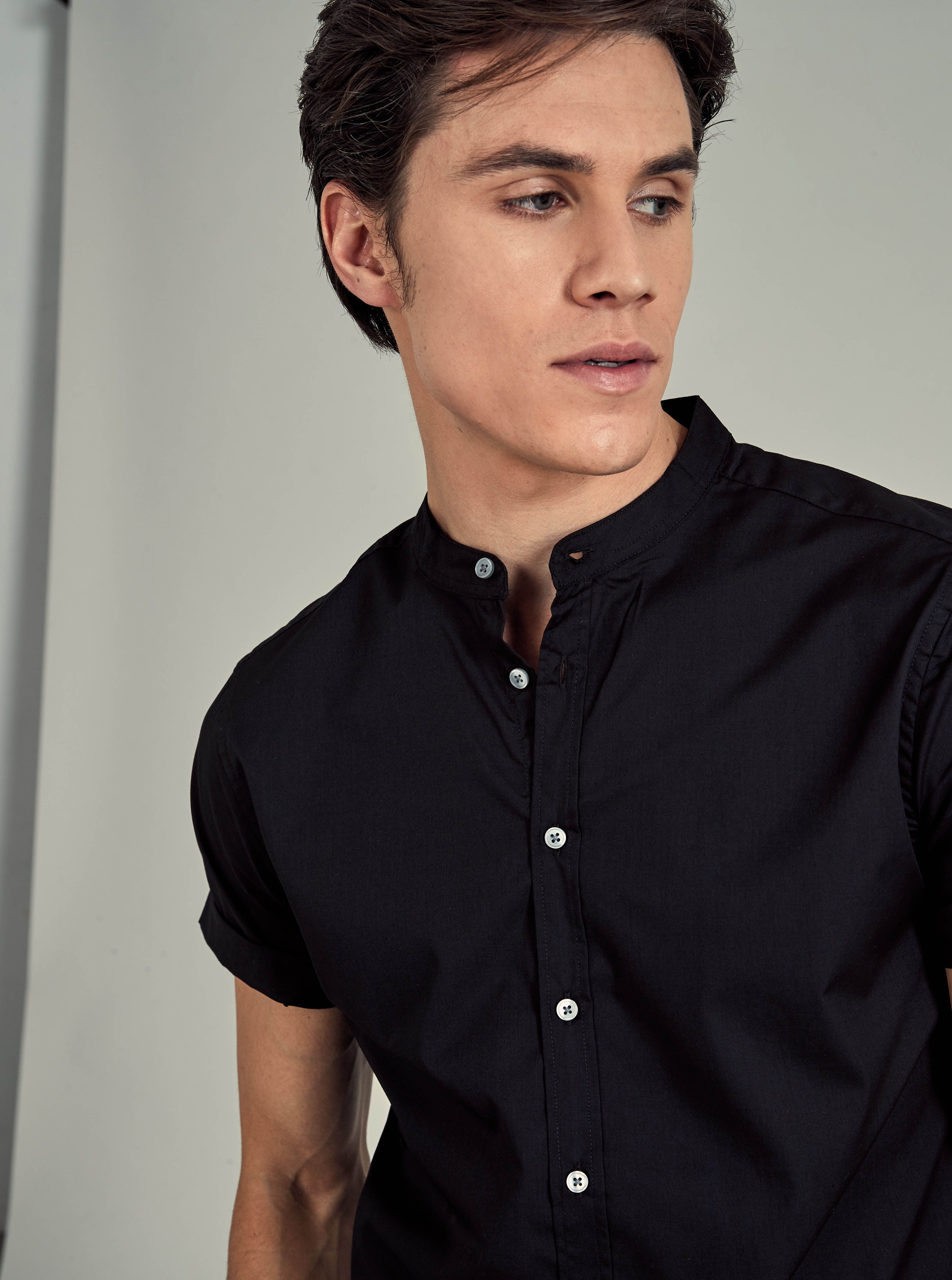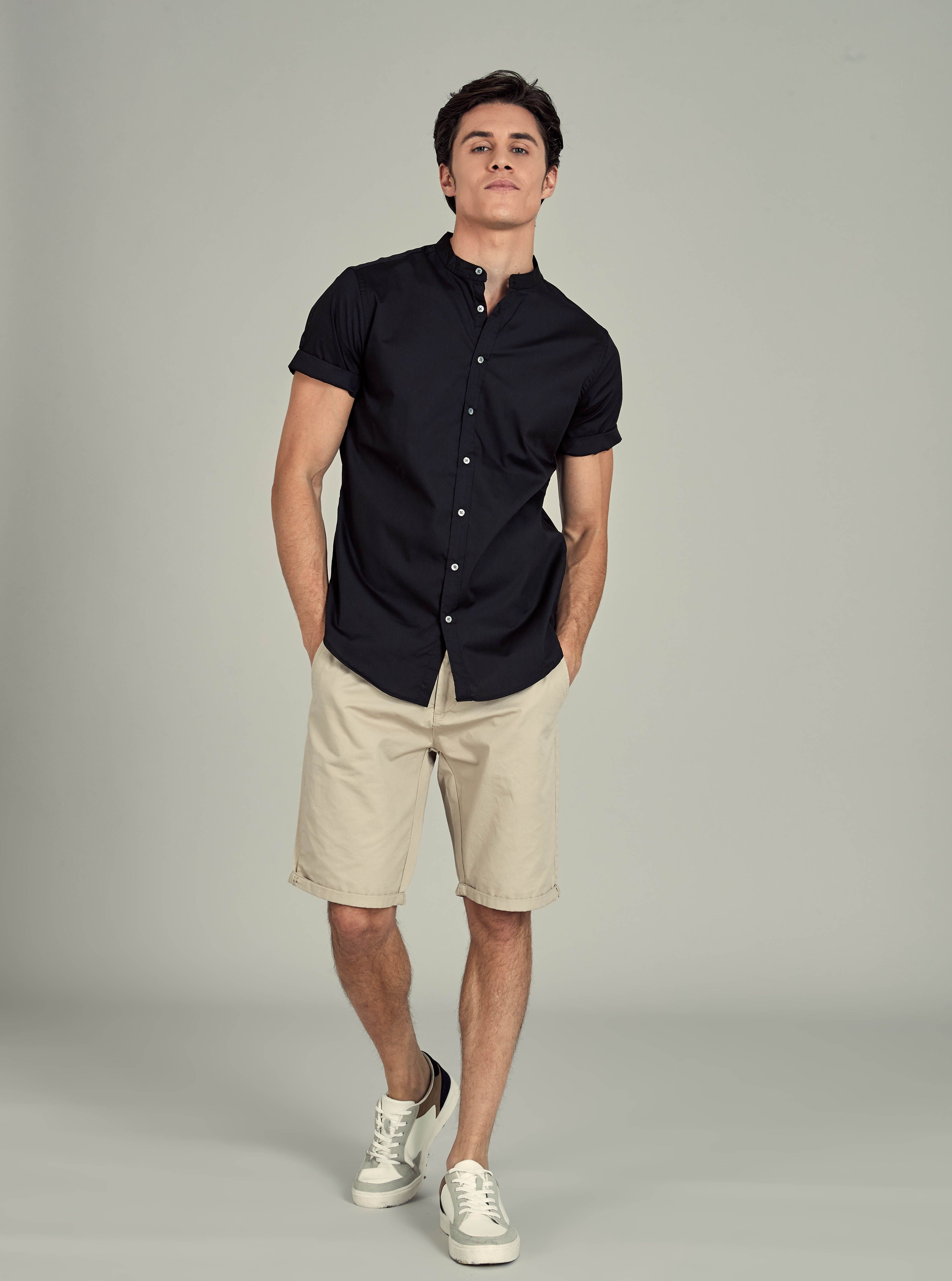 Рубашка Piazza Italia collo coreano чёрная