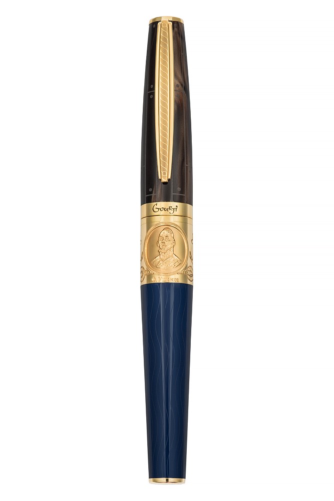 Ручка «Честь. Флот. Отечество» посвящена славной истории Российского флота и знаменательным победам России на море. Корпус ручки призван напоминать бороздящий морские просторы корабль: его нижнюю часть из голубой эмали прорезают волны, имитирующие морскую стихию, а верхняя часть с гравировкой по черному акрилу напоминает палубные доски. Клип ручки украшен гравировкой, стилизованной под корабельные канаты. На широком серебряном ободке ручке в технике гравировки и холодной эмали с одной стороны изображен профиль адмирала Федора Ушакова, командующего Черноморским флотом и российскими военно-морскими силами в Средиземном море с 1790 по 1800 годы, который обеспечил России многочисленные победы над турецким флотом в российско-турецкой войне. С другой стороны ободка можно видеть портрет адмирала Павла Нахимова, благодаря умелой стратегии которого эскадра Черноморского флота разгромила турецкий флот в Синопском сражении в 1853 году, а город Севастополь устоял и дал отпор врагу во время Севастопольской обороны 1854-55 годов. Этот пишущий инструмент станет памятным подарком для тем, кто стоит на страже российских морских границ и сегодня. Лимитация – 111 перьевых ручек и 111 чернильных.