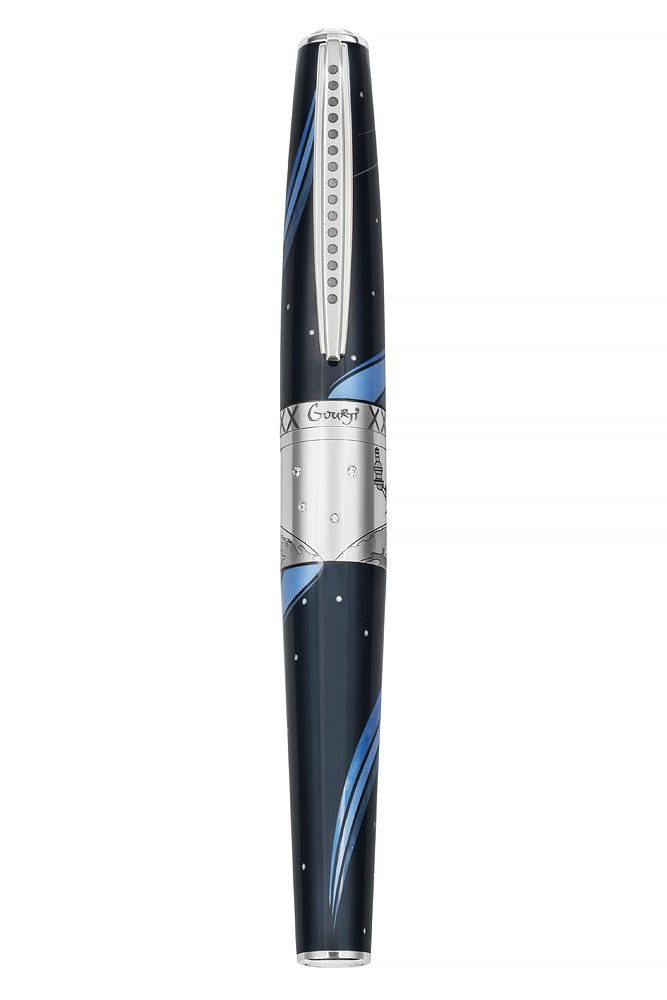 Ручка «Космос» посвящена достижениям нынешней России и прежнего СССР в освоении космического пространства. На корпусе из эмали темно-синего цвета сияет Млечный путь и сверкают звезды. В его верхней части это бесконечное пространство разрезает первый искусственный спутник Земли, запущенный в СССР в 1957 году. На серебряном ободке ручке изображен Луноход-1, идущий по поверхности Луны, где он успешно работал с 17 ноября 1970 по 14 сентября 1971 года. И, наконец, в нижней части корпуса синее небо эмали бороздит космический корабль «Восток-1», который 12 апреля 1961 года поднял на околоземную орбиту в космическое пространство первого человека – Юрия Гагарина. Все эти изображения выполнены в технике гравировки и покрыты эмалью, инкрустированной кристаллами Сваровски. Лимитация – 111 перьевых ручек и 111 чернильных.