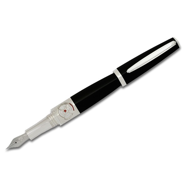 Перо – золото 18К, покрыто родием. Ручки изготовлены из черной смолы и стерлингового серебра, с использованием эмали.