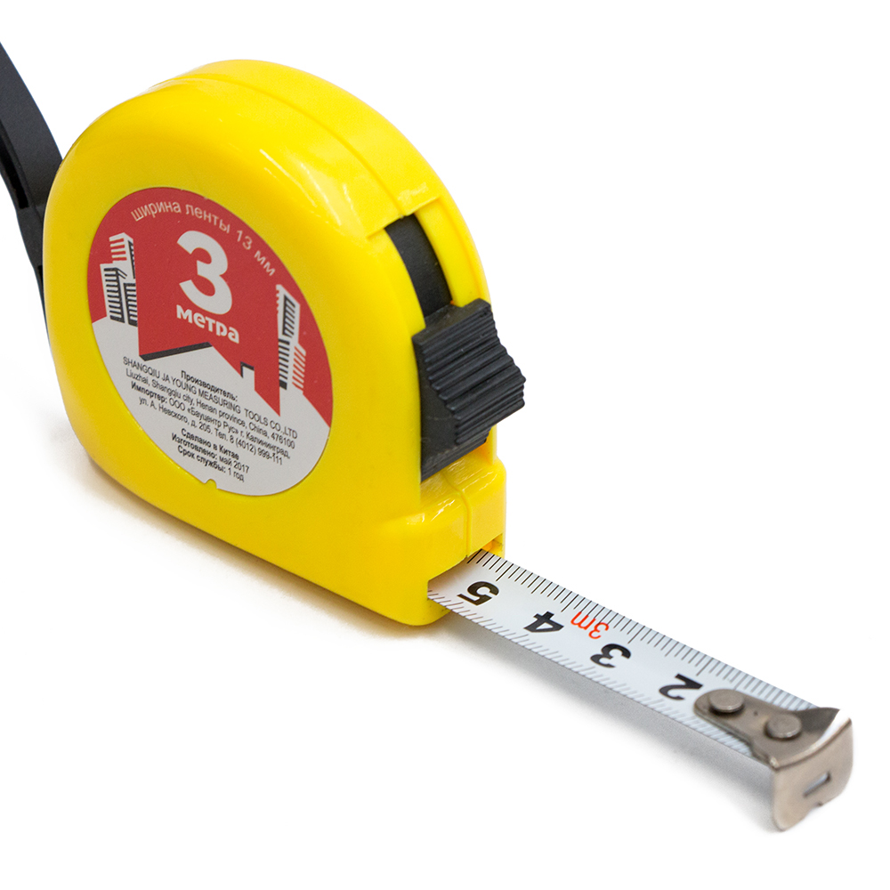 Практичная измерительная рулетка HY-18-3-13 изготовлена из прочной пластмассы. Оснащена одной кнопкой блокировки полотна.