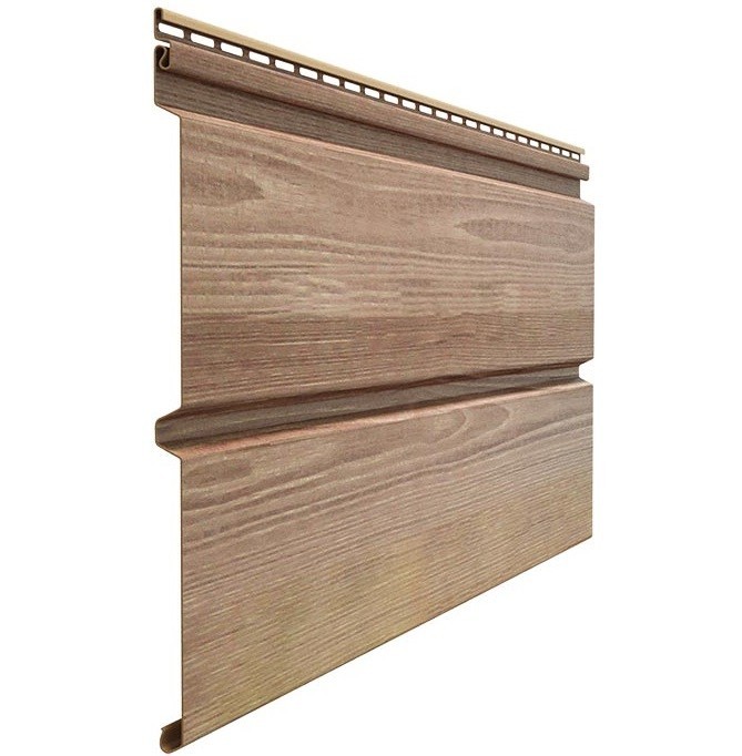 Дизайнерская серия Lux – особая, она сочетает в себе качество Дёке и великолепный внешний вид. В основу данной серии положены технологии глубокой офсетной печати по горячей поверхности винилового сайдинга. Текстурный рисунок создает имитацию сайдинга под дерево, что делает эту серию почти неотличимым от деревянного бруса или бревна. Сайдинг виниловый Docke Lux Брус D6S Рябина - стеновой наружный отделочный материал из поливинилхлорида, предназначенный для защиты фасада здания от воздействия климатических и экологических факторов, придания ему аккуратного и законченного вида. Все панели сайдинга для наружной отделки Docke оснащены антиураганным замком. Docke Lux Брус — надежный и практичный материал для отделки фасадов, отличающийся исключительным качеством и позволяющий быстро и без значительных финансовых затрат придать жилым и хозяйственным постройкам привлекательный внешний вид. Имитирует опиленное дерево, выпускается в самых популярных цветах. Легкие и прочные панели Docke выгодно отличаются от других отделочных материалов. Они не подвержены гниению и коррозии, быстро и просто монтируются, на долгие годы обеспечивают идеальный внешний вид постройкам и при этом стоят значительно меньше натуральной облицовки. Приобретая сайдинг виниловый Docke, вы получаете практичную и долговечную облицовку, которая прослужит не меньше 50 лет. Монтаж сайдинга Docke – занимательный и приятный процесс. Ведь с каждой новой панелью ваш дом будет преображаться на глазах. Преимущества сайдинга винилового Docke Lux Брус D6S: Новая технология предусматривает нанесение на лицевую сторону панели сразу нескольких цветов краски с одновременным её «сдвигом» вдоль панели для получения рисунка, как на натуральном дереве. Особые фильеры, через которые продавливается сайдинг WoodSlide, оставляют на панели глубокий рисунок, полученный методом трехмерного сканирования натурального дерева и похожий на лессирование благородный матовый блеск. Антиураганный замок – визитная карточка сайдинга для наружной отделки Дёке. Это специальный загиб на верхней кромке панелей сайдинга, который является дополнительным ребром жёсткости, увеличивает прочность фасада и исключает его «шуршание» при высоких ветровых нагрузках, что делает проживание в доме значительно более комфортным. Конструкция замка позволяет также значительно упростить и ускорить монтаж сайдинга. Пластификаторы, использованные в составе, придают сайдингу для наружной отделки дома эластичность. Можно не бояться града и прислонять к стене стремянку или велосипед. Панели выдерживают мороз и жару. Диапазон рабочих температур составляет от −50 до +50 °С. Сайдинг виниловый не нужно красить и обрабатывать защитными составами. Смыть пыль можно простой водой из шланга.