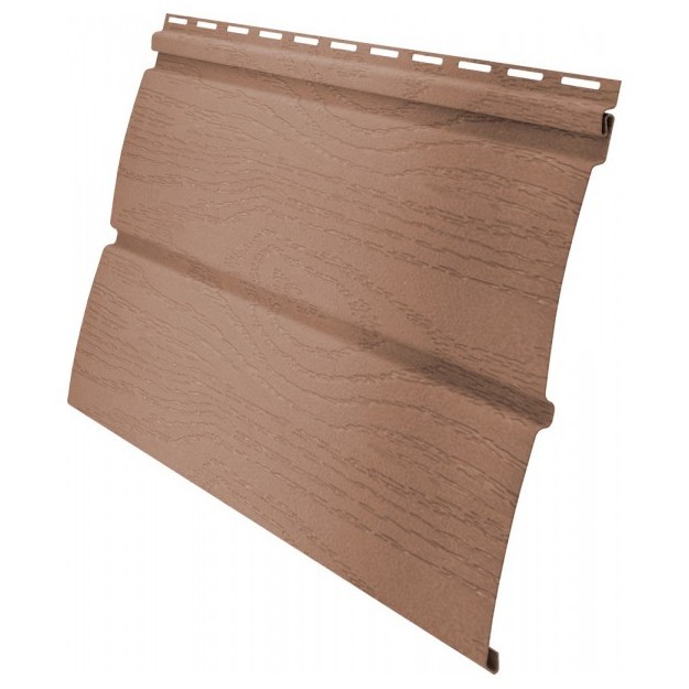 Сайдинг виниловый Блок-хаус Grand Line - облицовочный материал, предназначенный для отделки фасадов частных жилых объектов (домов, коттеджей, дач и т.п.). Обшивка сайдингом виниловым защищает от атмосферных осадков, воздействий внешней среды, а так же служит для сохранения тепла при использовании с соответствующим утеплителем. Геометрия панели (радиус ламели) сайдинга «Блок-хаус» D4,8 повторяет форму натурального бруса из ценной породы дерева - карельской сосны возрастом не менее 100 лет. Текстура поверхности со специальными «сучками» достоверно имитирует деревянный фасад. Длина общая: 3000 мм Ширина полезная: 244 мм На одном конце листа присутствует перфорация, которая позволяет упростить монтаж сайдинга винилового. Благодаря конструкционным особенностям замка панелей Grand Line Amerika время их монтажа снижается в 2 раза. Сайдинг виниловый выполняет следующие функции: защита фасада от воздействия ветра, снега, дождя и внешней среды; сохранение тепла (при использовании с соответствующим утеплительным материалом); имитация деревянной доски различной ширины, клееного бруса, сруба (декоративная функция). Одним из важнейших показателей для сайдинга винилового является прочность. От нее зависят особенности проведения монтажных работ и срок эксплуатации облицовки фасада. Для максимального увеличения этого показателя производителем используется запатентованная система ShockProof GL. Результатом плодотворного сотрудничества с компанией Penn Color Inc. и The Vinyl Siding Institute (VSI) стала эксклюзивная система защиты SunProof GL. Внедрение ее в производство позволило получить сайдинг для наружной отделки с уникальной стойкостью к выцветанию. Для производства винилового сайдинга Grand Line Amerika используются компоненты ведущих американских и европейских производителей. Рецептура сайдинга содержит 100% ПВХ американского производства крупнейшего завода производителя ПВХ в мире. Также завод Grand Line имеет самое современное в России техническое оснащение, новейший парк производственного оборудования. Эксплуатируется оборудование производства США, Австрии, Италии. Сайдинг-панель D4,8 GL America – один из наиболее популярных материалов, так как обладает рядом достоинств. Преимущества сайдинга винилового Grand Line: Обладает красивой текстурой, не электризуется, отталкивает пыль, грязь. Производитель предоставляет 50 лет гарантии на все модели сайдинга. В течение всего срока эксплуатации такая облицовка не растрескается, не вздуется, не расслоится. Монтаж сайдинга прост и удобен. Предусмотрена специальная конструкция замка, который легко защелкивается, выдерживает сильные нагрузки и давление. За счет этого каждая панель винилового сайдинга плотно прилегает друг к другу. Фасадный материал от Grand Line сохраняет насыщенность цвета. Сайдинг для наружной отделки дома имеет уникальную систему защиты от воздействия ультрафиолетовых лучей. Со временем такой фасад не выцветает и сохраняет свой привлекательный эстетичный вид. Сайдинг виниловый обладает повышенной ударной прочностью. Отделку таким материалом можно проводить девять месяцев в году. Фасадные панели сохраняют ударопрочность при температуре до -10 градусов по Цельсию. При изготовлении такого фасадного материала используются только современное европейское оборудование и высококачественный поливинилхлорид (ПВХ). Имеет малы
