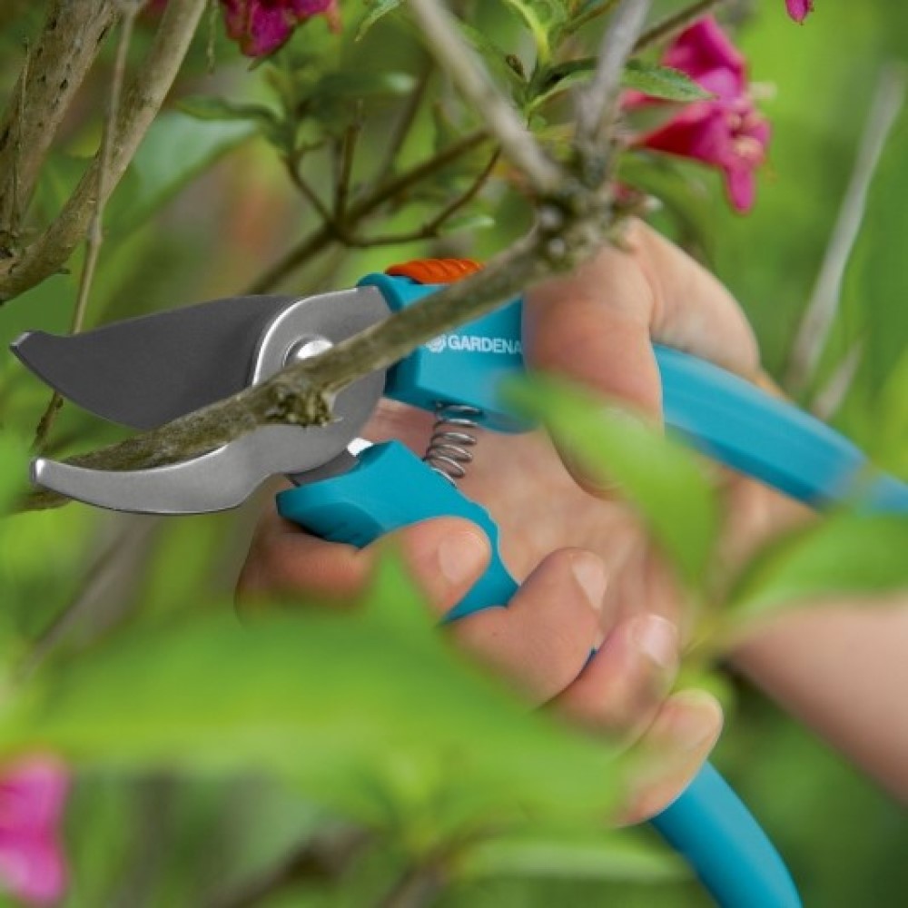 Лезвия расположенной под углом режущей головки имеют прецизионную заточку и покрытие от налипания. Благодаря рукояткам эргономичной формы секатор удобно лежит в руке. Два положения захвата позволяют производить как мощную обрезку, так и быстрое срезание. В секаторах предусмотрен желобок для стекания сока растений и резак для проволоки. Фиксатор, переключаемый одной рукой, дает возможность с легкостью заблокировать секатор для безопасного хранения.