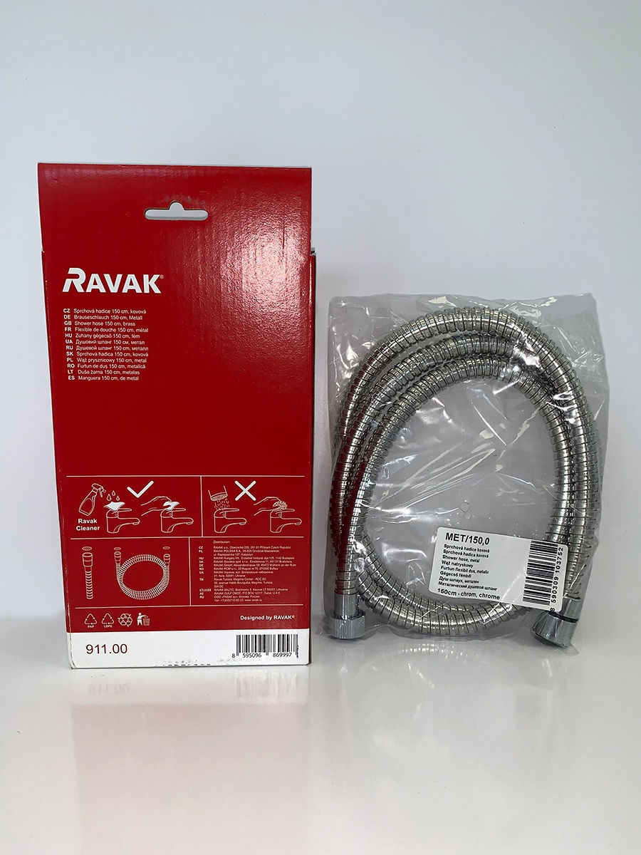 RAVAK - сделано в Чехии! Мы работаем для вас в России с 1997 года и предлагаем европейский продукт, проверенный временем и российскими условиями эксплуатации. Сочетание многолетнего опыта, современных технологий и первоклассных материалов обеспечивают максимально высокое качество. Душевой шланг, изготовленный из прочной ПВХ-основы с металлической внешней оплеткой. Шланг эффективно защищён о царапин и благодаря функции EasyTwist никогда не перекручивается в местах соединения с лейкой и смесителем, что гарантирует его долговечность.