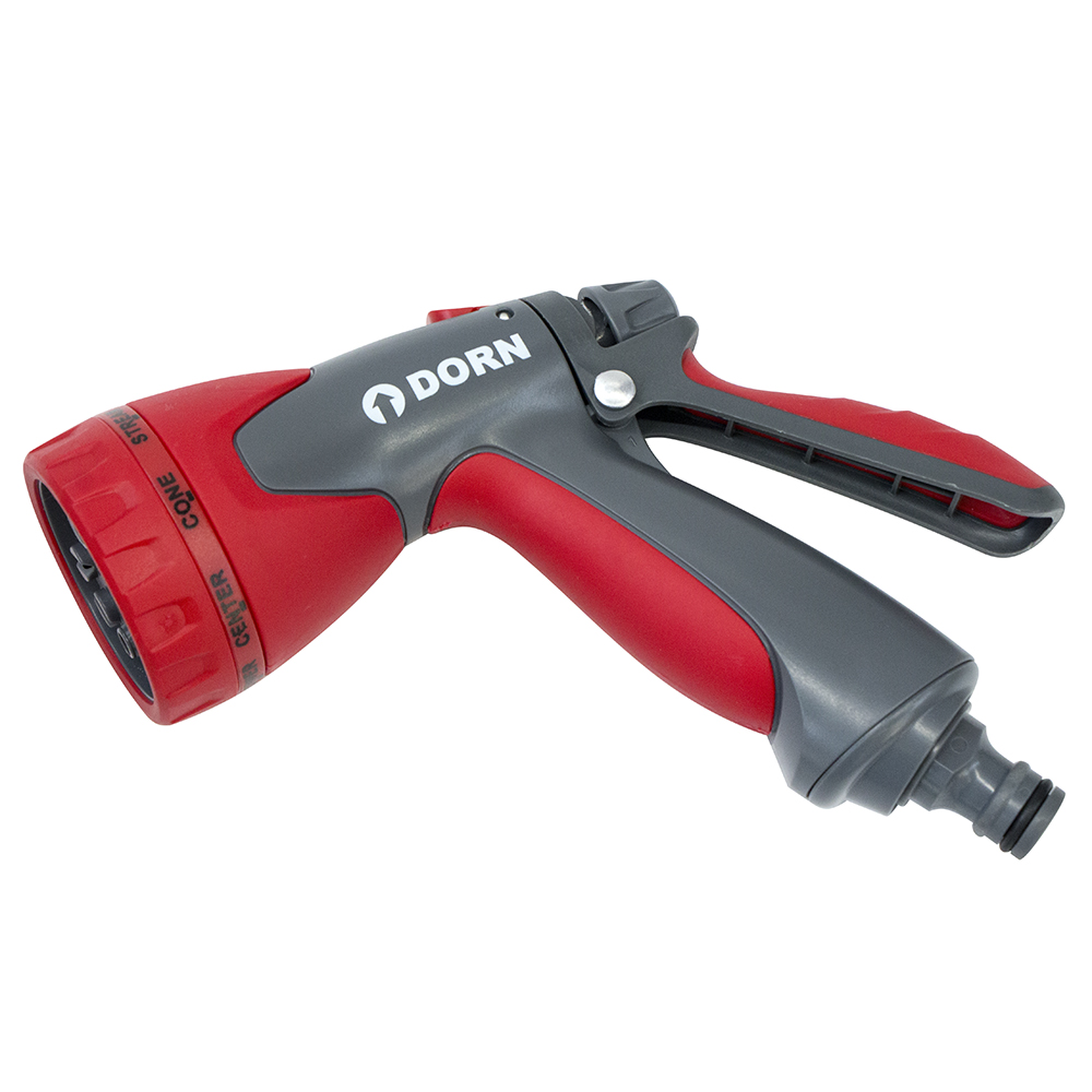 Поливочный шланг DORN в комплекте с пистолетом-распылителем с 8 функциями. Растягивается от 10 до 30 м.