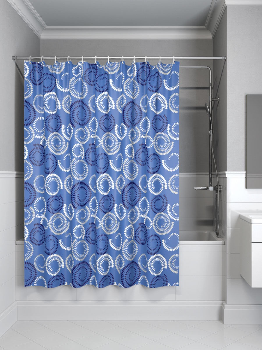 Штора для ванной комнаты, коллекция Basic; 100% Полиэстер; плотность - 80 гр/м2; размер - 200x180 см. Водоотталкивающее покрытие; 12 колец C-type. Материал люверсов - Пластик прозрачный. Упаковка - ПВХ пакет. Состав: полиэстер 100%