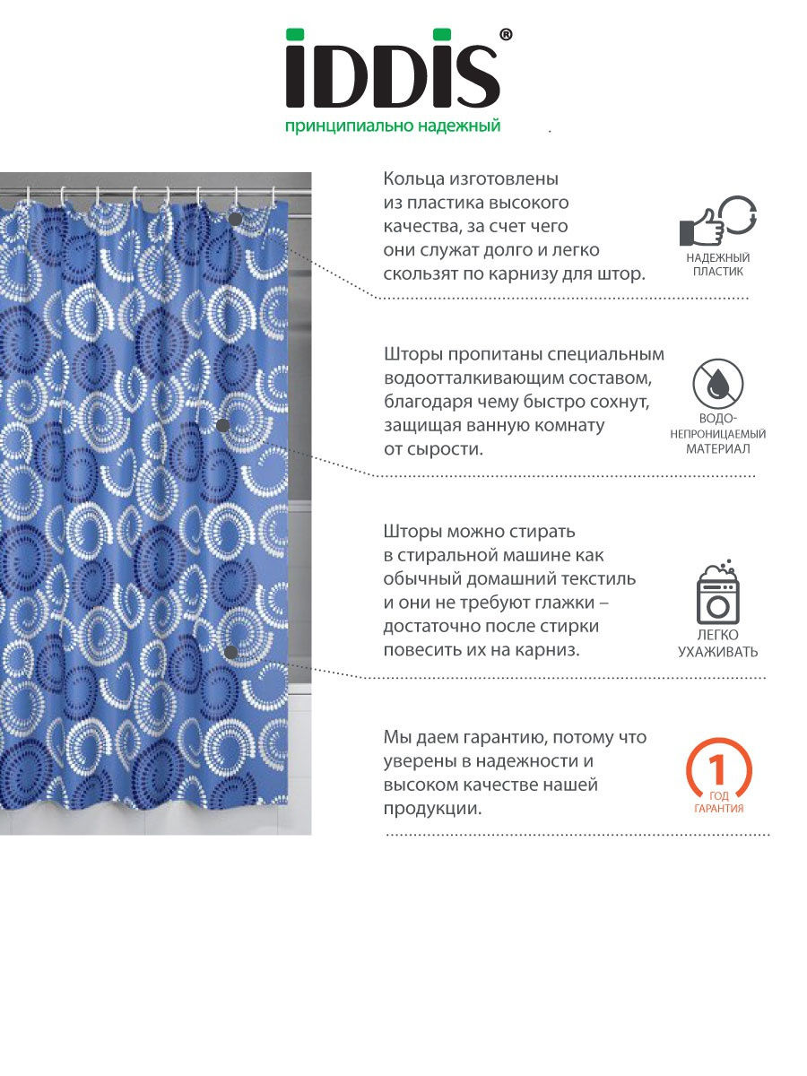 Штора Iddis для ванной комнаты, 200x180 см, полиэстер, B60P218i11