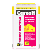 Сухую строительную смесь Ceresit THERMO UNIVERSAL применяют для закрепления на минеральных основаниях теплоизоляционных плит (пенополистирольных и минераловатных) и для создания армированного штукатурного слоя при утеплении объектов индивидуального жилищного строительства. Строительная смесь Ceresit THERMO UNIVERSAL предназначена для наружных работ.