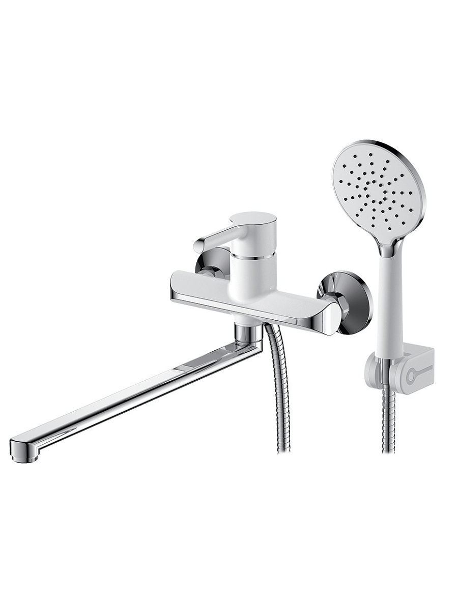 Смесители коллекции Elat - оснащены комплектующими производителей мировых лидеров в своем сегменте. Смеситель Elat 40-L35P для ванны и умывальника с поворотным изливом, белый -хром. Инновационный запорный механизм от ведущего производителя \"Kerox\" - картридж смесителя совмещен с дайвотером. Данная система позволяет не только регулировать температуру и напор при помощи рукоятки смесителя, но и производить переключение с излива на душ, что создает дополнительный комфорт и удобство при использовании изделия. Картридж D 40 мм обеспечивает максимальную пропускную способность потока воды. Комплектуется смеситель усиленными латунными эксцентриками с редуктором поглащения шума, растяжным усиленным душевым шлангом с механизмом антиперекрута лейки, 150 см - 180 см, душевой лейкой d 110 мм, и двухпозиционным кронштейном. Приятным дополнением является ключ для монтажа аэратора и предохранительные монтажные накладки на гайки. Состав: латунь 100%