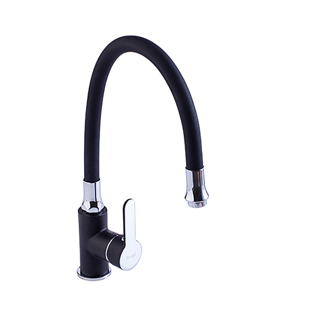 Смеситель для кухни Frap F4042 с гибким изливом хром, чёрный