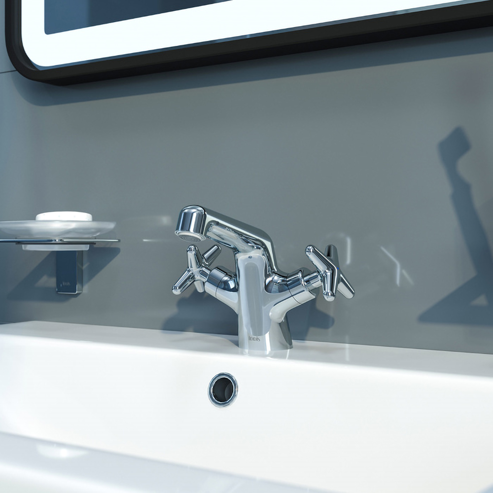 Смеситель для раковины IDDIS Acros (Иддис Акрос) ACRSB00i01 изготовлен из высококачественной латуни (ГОСТ 17711-93). Латунный корпус, стойкий к перепадам давления и температур, обладает антикоррозийными свойствами и безопасен для здоровья. Увеличенное никель-хромовое покрытие устойчиво к истиранию и придает модели зеркальный блеск. Смеситель комплектуется керамическими кран-буксами с углом поворота 180°, что обеспечивает точную регулировку температуры воды. Излив оснащен силиконовым аэратором Neoperl М24, который легко очищается и насыщает водную струю воздухом, что делает ее мягкой, снижает количество брызг и помогает экономнее расходовать воду. Максимальный расход воды: 14 л/мин. Для подключения к системе водоснабжения в комплект входит гибкая подводка из нетоксичной EPDM резины в оплетке из нержавеющей стали длиной 400 мм.