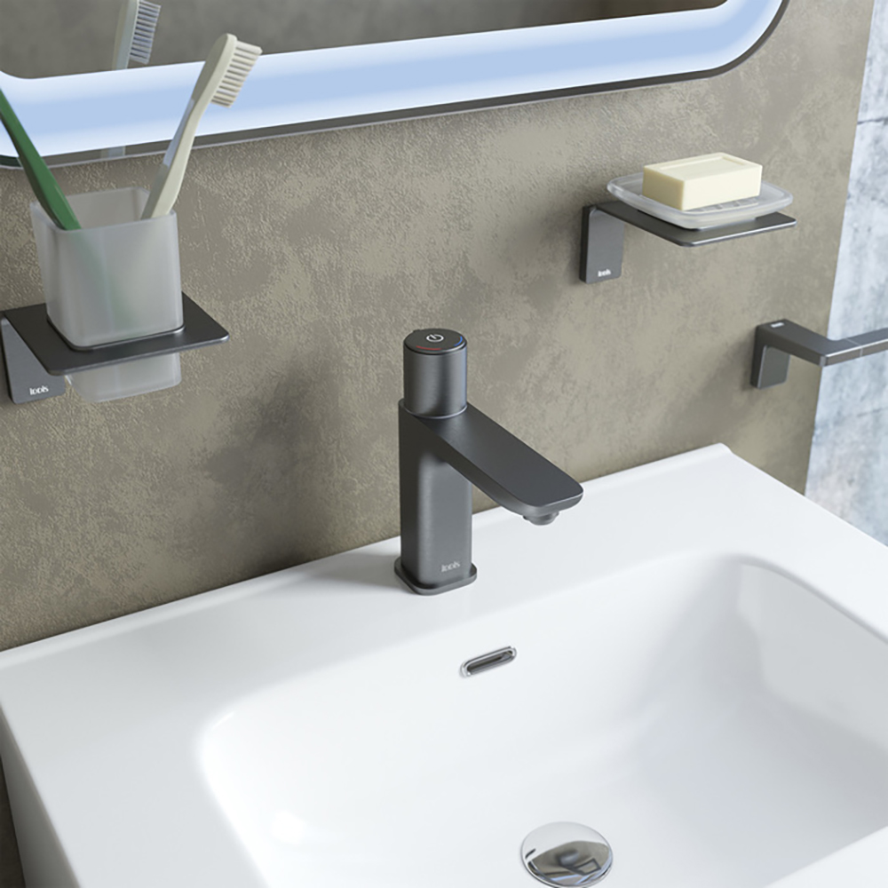 Смеситель для раковины IDDIS Slide Push Control (Иддис Слайд Пуш Контрол) SLIGMBTi01 изготовлен из высококачественной латуни ЛЦ40C (ГОСТ 17711-93). Латунный корпус, стойкий к перепадам давления и температур, обладает антикоррозийными свойствами и безопасен для здоровья. Корпус имеет графитовое матовое покрытие, нанесенное методом электрофореза. Вода включается и выключается нажатием кнопки на корпусе. Температура регулируется вращением ручки вокруг кнопки. В комплект входят два сменных аэратора: - Neoperl Mikado M24 превращает поток воды в тонкие струи, создающие рисунок в виде сетки. Расход воды: 1,6 л/мин; - силиконовый аэратор Neoperl M22 легко очищается и насыщает водную струю воздухом, что делает ее мягкой, снижает количество брызг и помогает экономнее расходовать воду. Расход воды: 5 л/мин. Для подключения к системе водоснабжения в комплект входит гибкая подводка длиной 35 см.