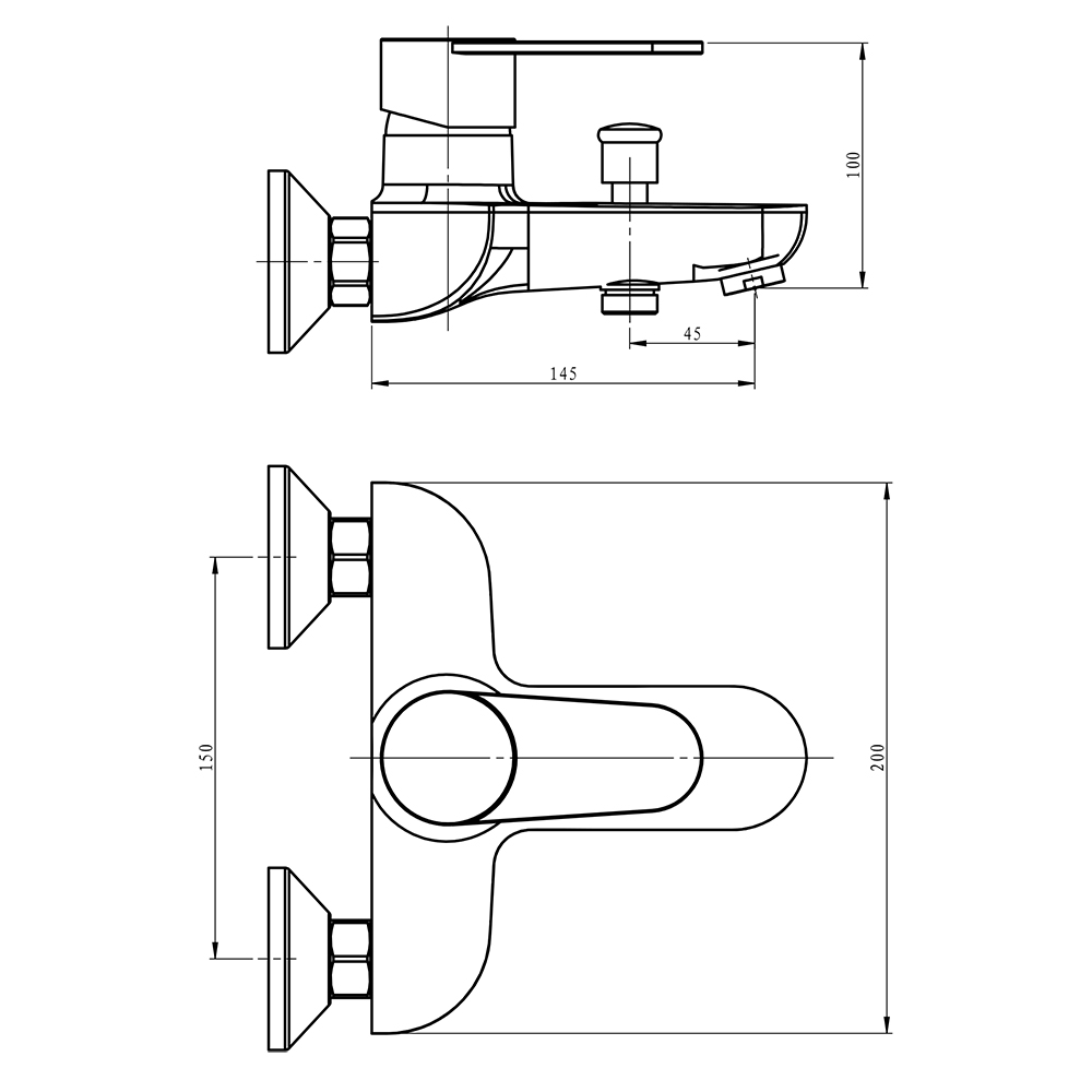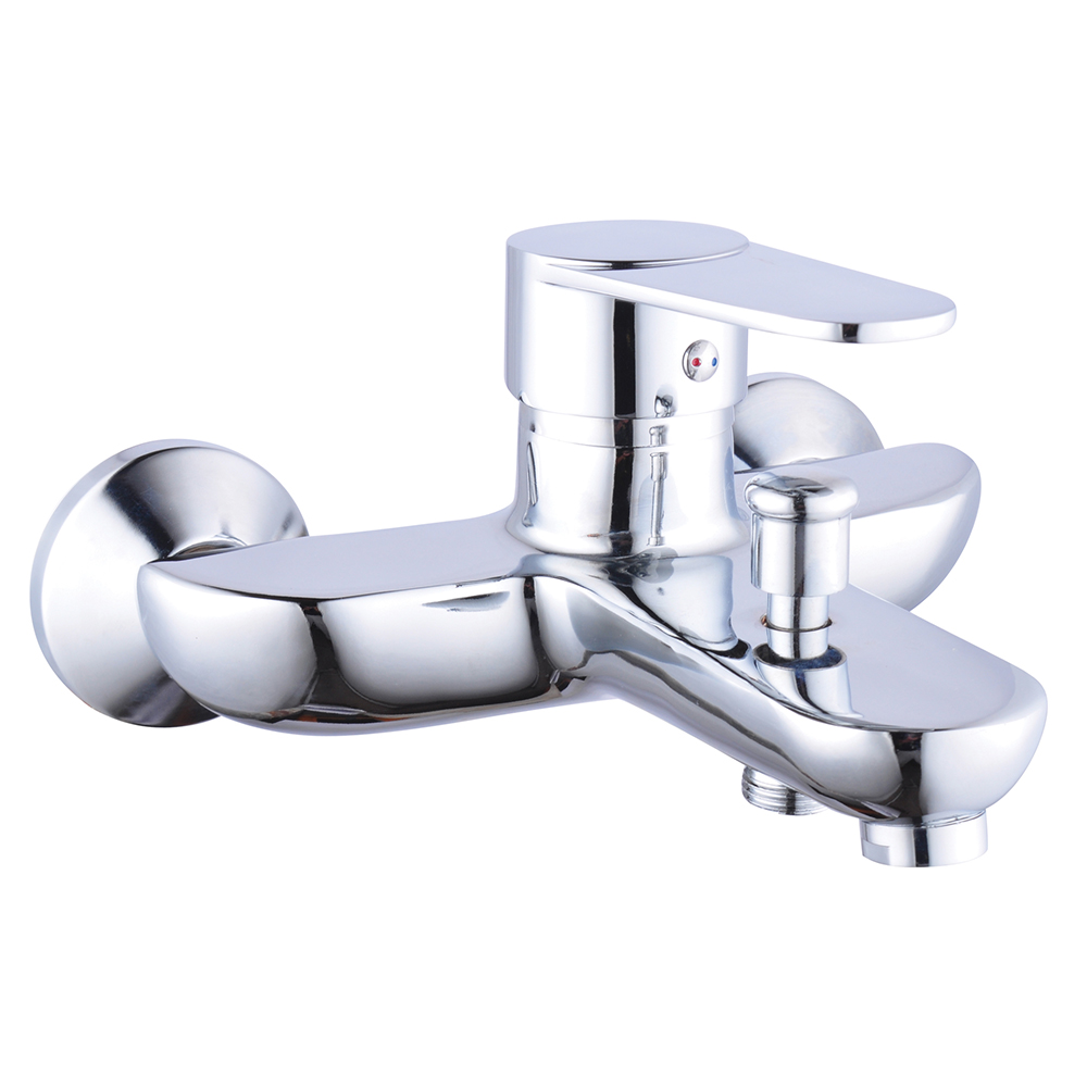 Однорычажный смеситель для ванны и душа с коротким изливом.