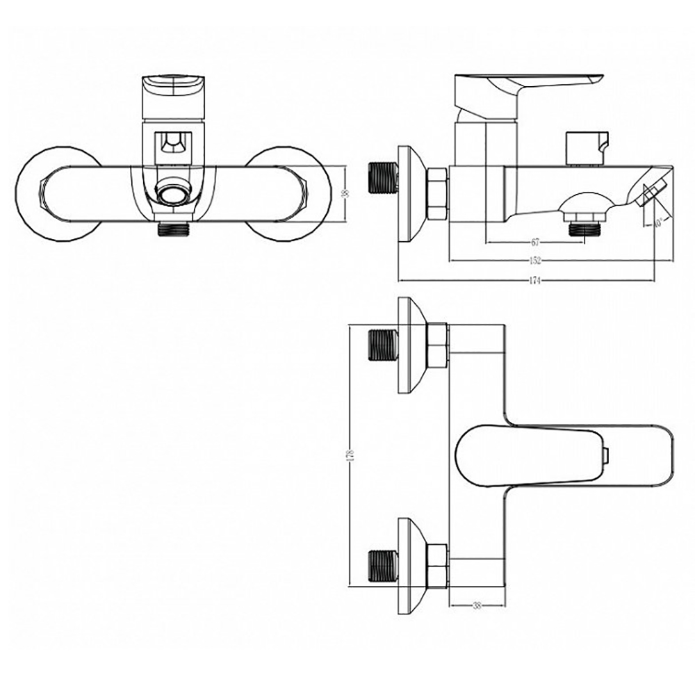 Однорычажный смеситель с коротким изливом для ванны и душа.