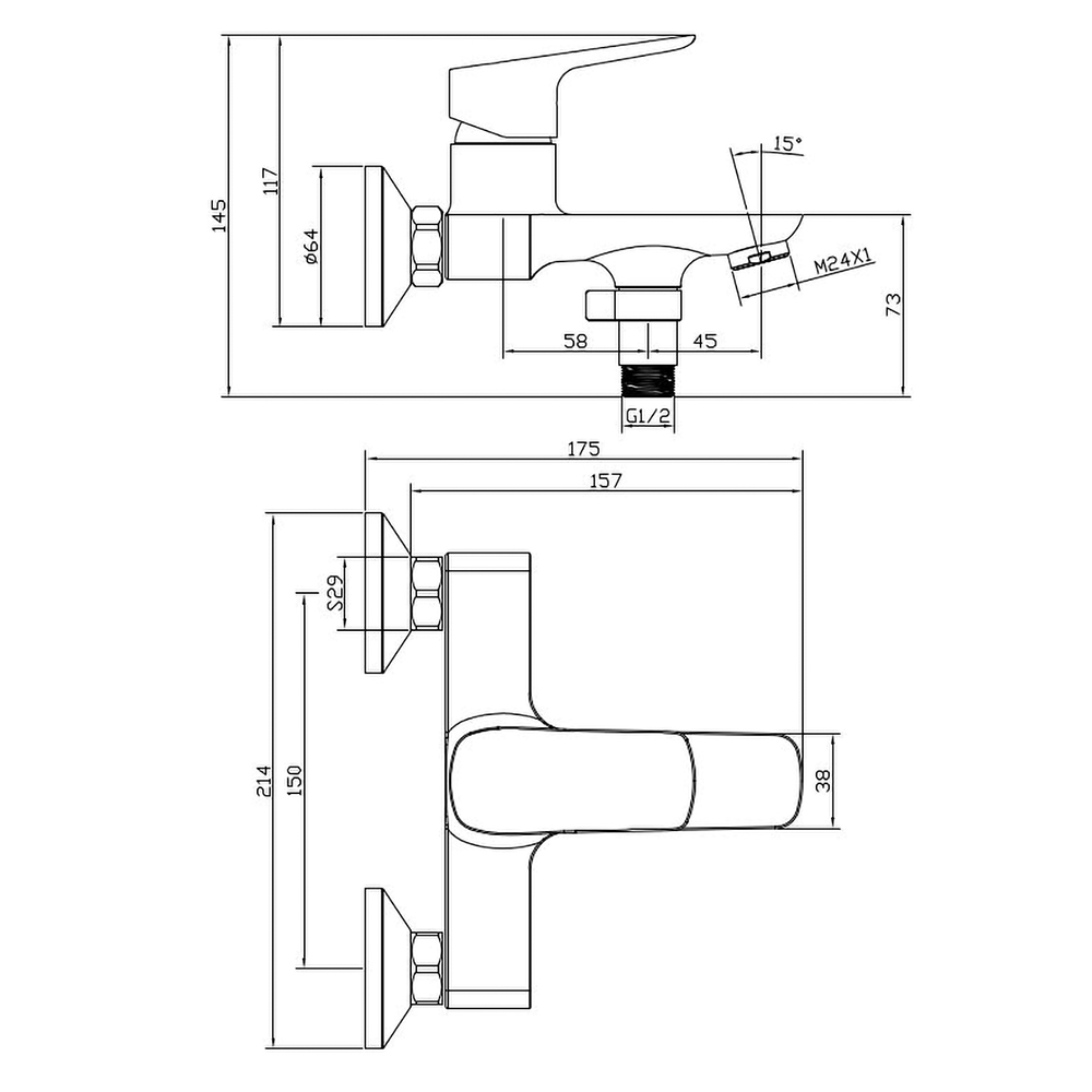 Однорычажный смеситель с коротким изливом для ванны и душа.