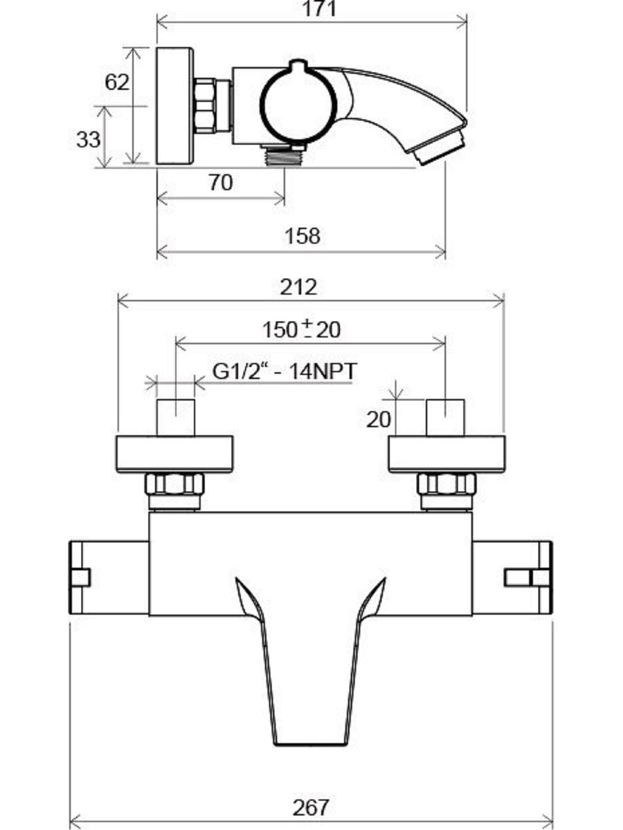Смеситель Ravak TE 082.00 для ванны и душа с термостатом