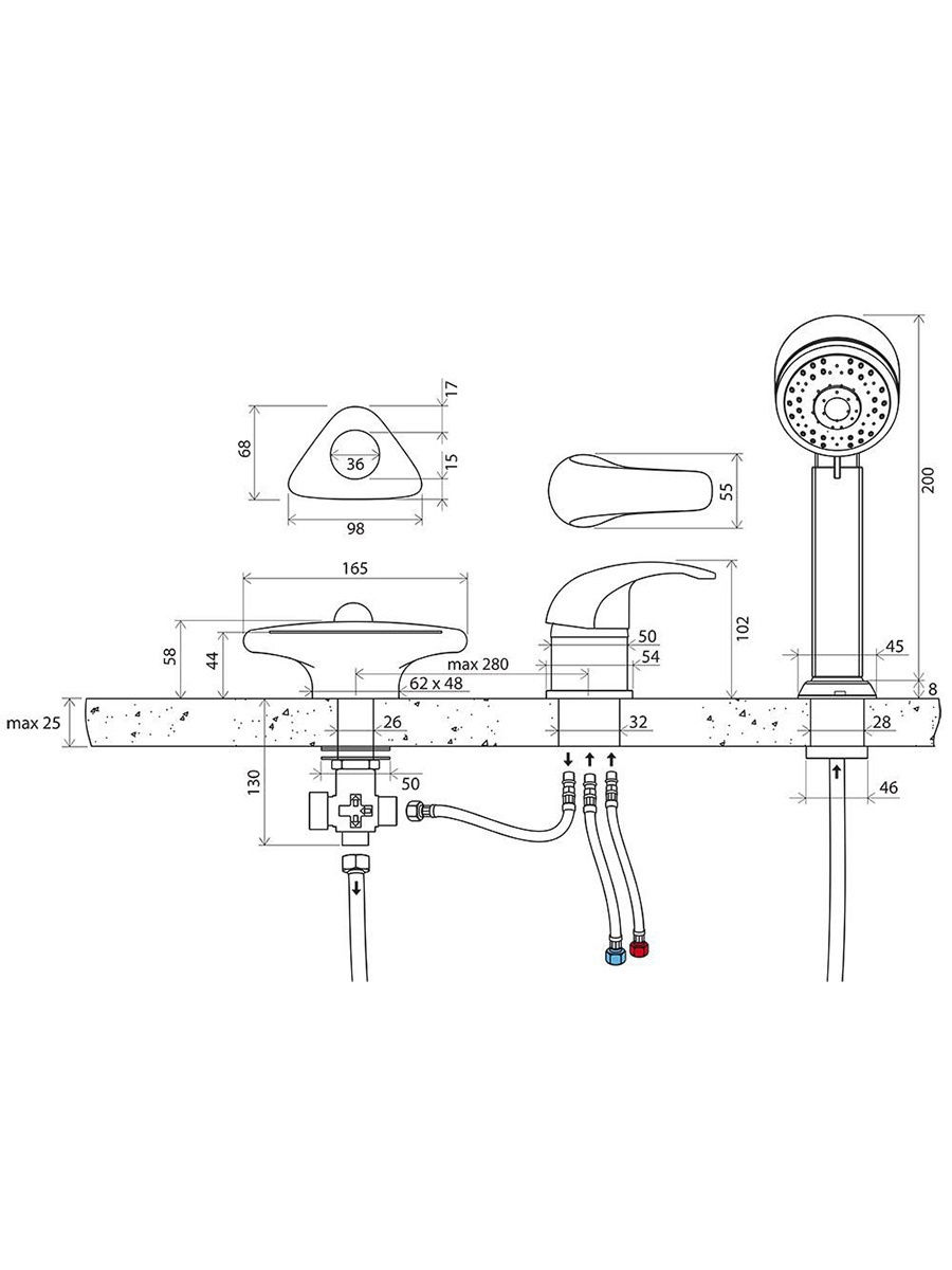 лейка; шланг; смеситель; установочный комплект |