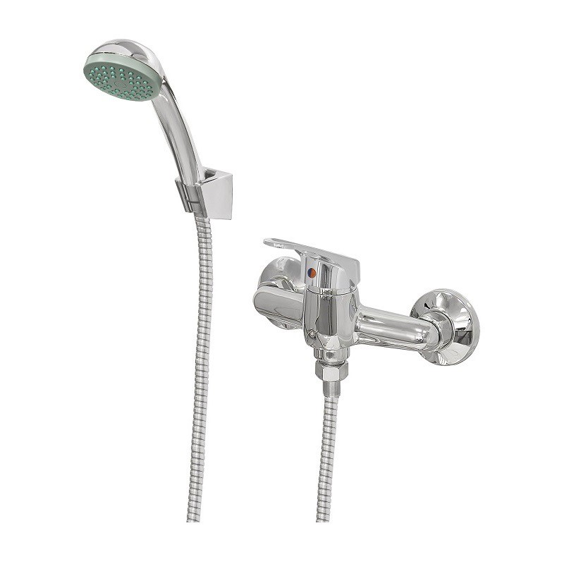 Сделан из силумина (сплав алюминия с цинком). Смеситель оснащён аэратором с пластиковым сердечником. При использовании аэратор обеспечивают ровный поток воды. В комплект смесителя входит лейка для душа, шланг и кронштейн.