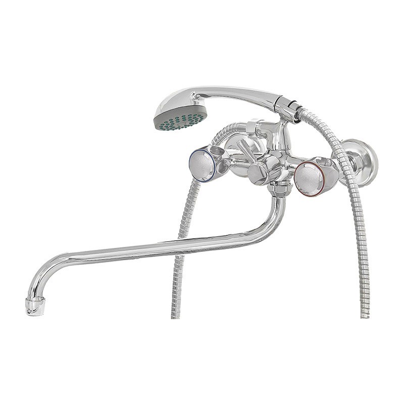 Сделан из силумина (сплав алюминия с цинком). Смеситель оснащён аэратором с пластиковым сердечником. При использовании аэратор обеспечивают ровный поток воды. В комплект смесителя входит лейка для душа и шланг.