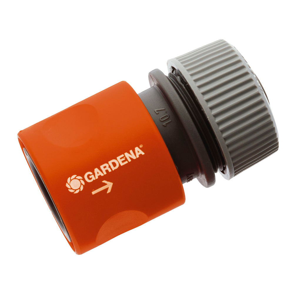 Коннектор выполнен в современном дизайне, мягкий рифленый пластик позволяет надежно удерживать оснастку в руке. Прочная металлическая зажимная гайка коннектора обеспечивает надежное герметичное крепление шланга.