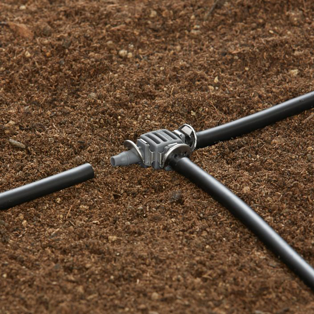 Соединитель предназначен для распределения шланга до трех линий. Является элементом системы микрокапельного полива.