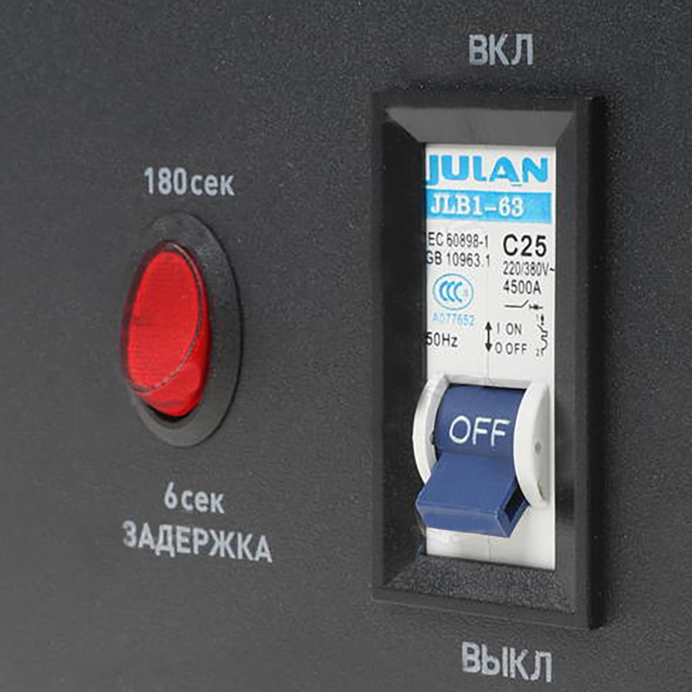 Настенный стабилизатор поддерживает напряжение питания нагрузок бытового назначения в пределах 220 В при отклонениях сетевого напряжения в пределах от 140 до 260 В. Максимальная нагрузка - 8000 Вт.