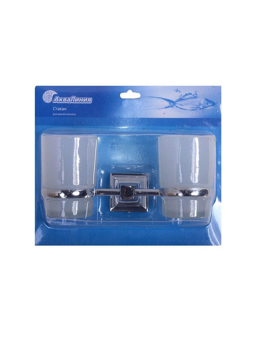 Комплект из двух стеклянных стаканов, крепится к стене при помощи держателя из хромированного металла. Крепеж в комплекте.