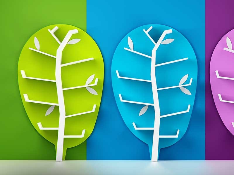 По-настоящему необычный и одновременно прочный, функциональный стеллаж в форме дерева станет доминирующим элементом мебели в комнате. Стеллаж крепится к стене монтажными болтами - декоративные элементы в форме листиков прикроют их.