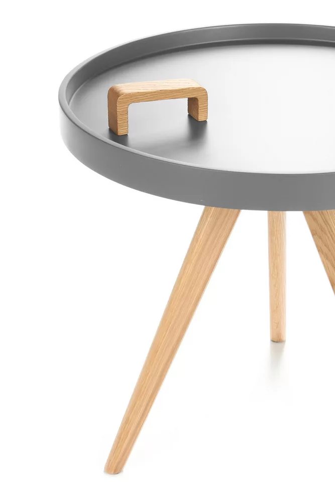 Круглый кофейный столик Oxley от Cosmo с ручкой. Компактный столик, который обязательно впишется в современный интерьер любой жилой комнаты. Отличительная особенность этого стола — ручка для переноски, которая прикреплена к столешнице. Таким образом, столик легко перенести с одного места на другое. Он очень удобен при сервировке обеденных трапез или в качестве придиванного/прикроватного.