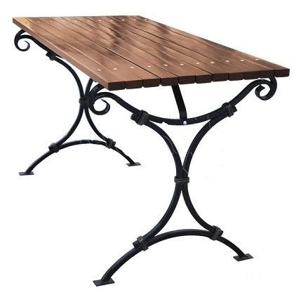 Стол для дачи и сада «Авен» - это шикарное сочетание лёгкости, красоты и надёжности. Выполнен из стали с коваными элементами и деревянной столешницей. Интересный дизайн и возможность комплектования схожими скамейками и садовыми креслами, делает этот стол незаменимым на садовом участке. Также, он достаточно популярен для установки в летних кафе и ресторанах. Стол имеет дополнительную защиту от раскачивания. Материалы: Опоры: сталь с коваными элементами. Покрыты порошковой полимерной краской. Стандартный цвет (по умолчанию) - черный + бронзовое патинирование. Столешница: Брус из хвойных пород древесины - сосна/ель различного сечения. Огнебиозащитные пропитки + тонировочный состав с антисептиком + два слоя яхтного лака с промежуточным шлифованием. Фурнитура: оцинкованная. Стандартный цвет (по умолчанию) - серебристый. Цвет: Палисандр Натуральное дерево - это надежный, жесткий и крепкий материал, отличающийся особой неповторимой красотой, цветом и текстурой. Сосна и ель имеют высокую плотность, а значит хорошую теплопроводность. После высыхания древесину не коробит, и она выдерживает любые атмосферные явления. Не выделяет токсичных испарений и веществ, особенно в солнечные и жаркие летние дни. Преимущества садового стола Авен: Прочность и надежность. Безопасность эксплуатации. Высокое качество продукции. Изделие проходит несколько стадий контроля качества. Использование инновационных решений в производстве продукции. Стойкость к воздействию влаги и осадков. Экологичность материалов. Превосходный дизайн. Стойкость к истиранию и к воздействию слабых щелочных растворов. Простота в уходе. Долговечность. Продукция сертифицирована. Уличная и дачная мебель из сосны/ели дает возможность стать ближе к природе благодаря всегда теплому, красивому дереву. Садовый стол из дерева и металла будет отлично смотреться как в беседке, на веранде, так и на открытой площадке. Вы можете быть уверены в том, что ваш выходной в компании друзей пройдет идеально.Окружите свой тихий уголок изысканной мебелью от "Хоббика", сделав его более притягательным. Никогда еще ваша сиеста не была такой грандиозной!